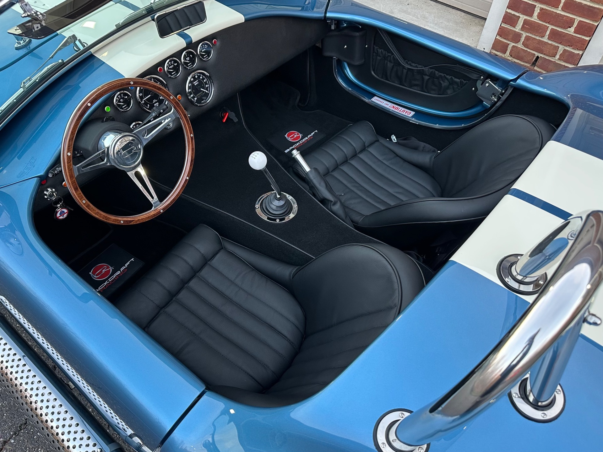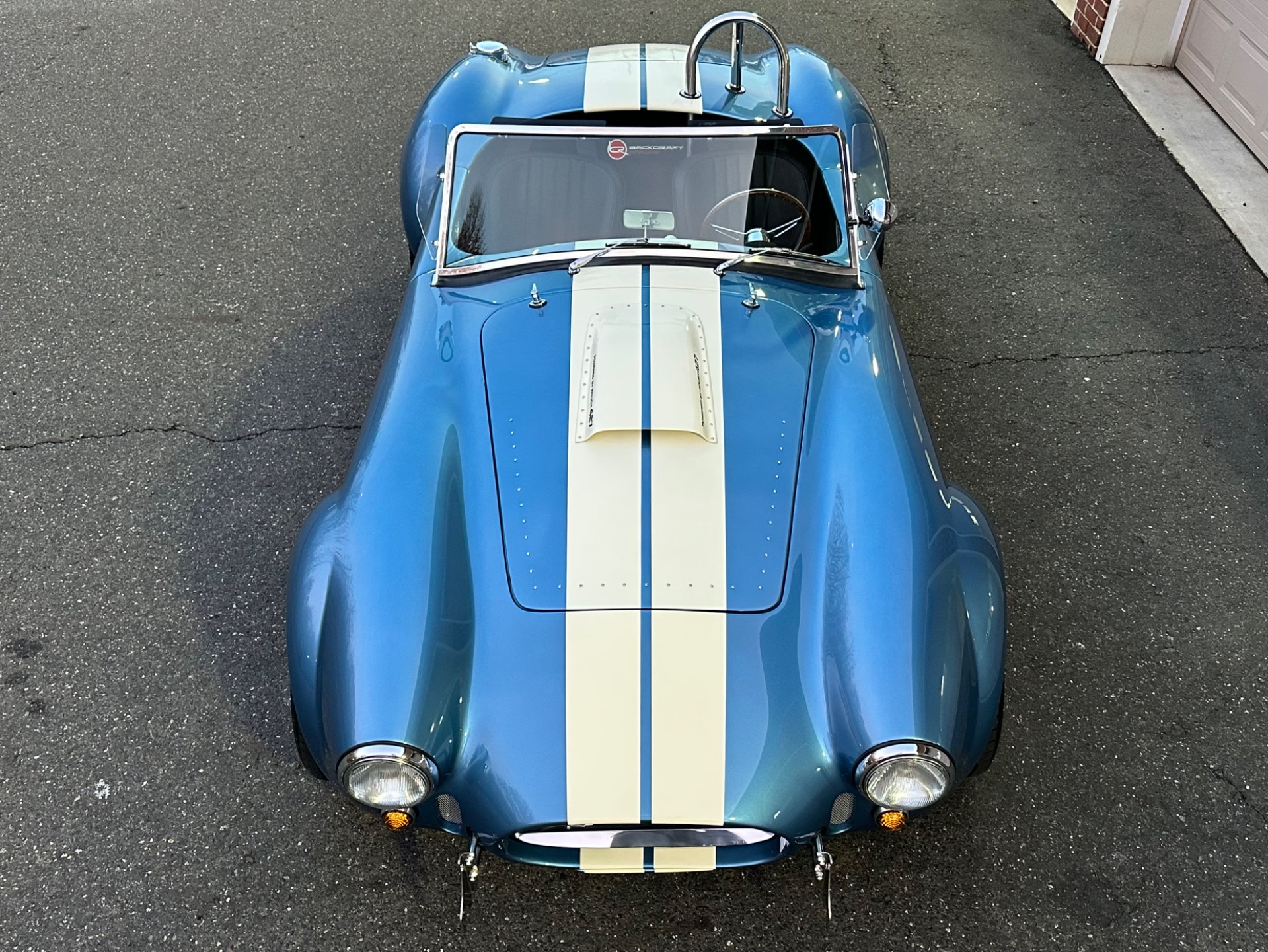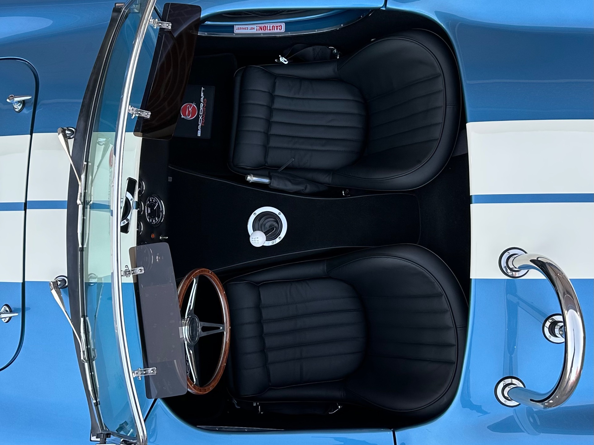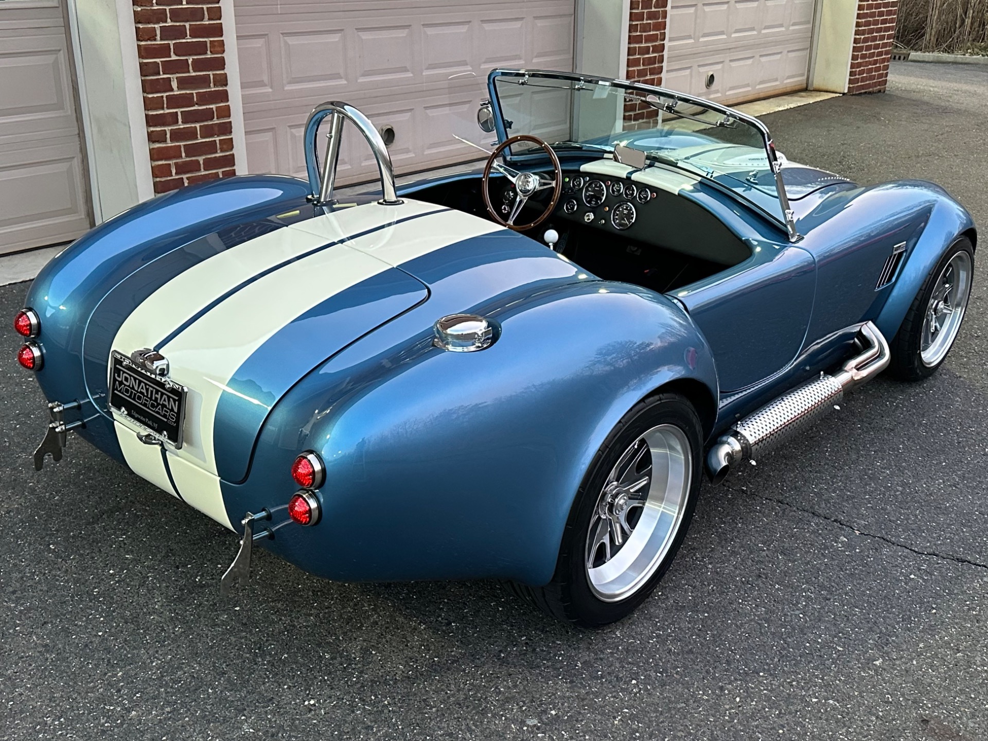 New arrival at Jonathan Motorcars, your Official Backdraft Racing Dealer, this is a brand-new 1965 Backdraft Cobra finished in the legendary Guardsman Blue with Wimbledon White stripes, the iconic combination that instantly calls back to the golden-era Shelby look. It's the kind of paintwork that stops people mid-sentence, and with the stripes carrying the theme even under the hood, the details hit just right from every angle.  At the heart of this Cobra is the Roush Performance 427IR 8-Stack, putting down a thrilling 580 horsepower with the visual drama and throttle response that makes an eight-stack car feel alive in a way few modern builds can match. Open the door and you'll find a cockpit that blends classic style with thoughtful upgrades, including Autometer OEM-style gauges, heated seats, a custom shift knob, and cam-lock style seat belts that feel properly motorsport-inspired.  This one is also equipped exactly the way enthusiasts want itpower steering for confident feel at any speed, remote brake and clutch reservoirs for clean serviceability, and an oil cooler with stainless steel fittings to help keep everything happy when the pace picks up. The build is finished with premium touches like a Raydot mirror, 3M clear film paint protection that helps preserve that show-stopping finish, and the right hardware throughout including an aluminum radiator and aluminum gas tank.  And because these are hand-built, race-inspired cars, Jonathan Motorcars takes delivery preparation seriously. Before this Cobra ever heads to its next owner, it will go through our Delivery Standard: an additional 20-30 hours of in-house inspection, service, and real road testing to thoroughly sort the car and ensure it leaves our facility dialed-in, resolved, and ready to be enjoyed the moment it arrives. We also offer financing options to make the purchase simple, and we can ship fully enclosed anywhere in the USA so your Cobra arrives the right way, safe, protected, and ready for the road.