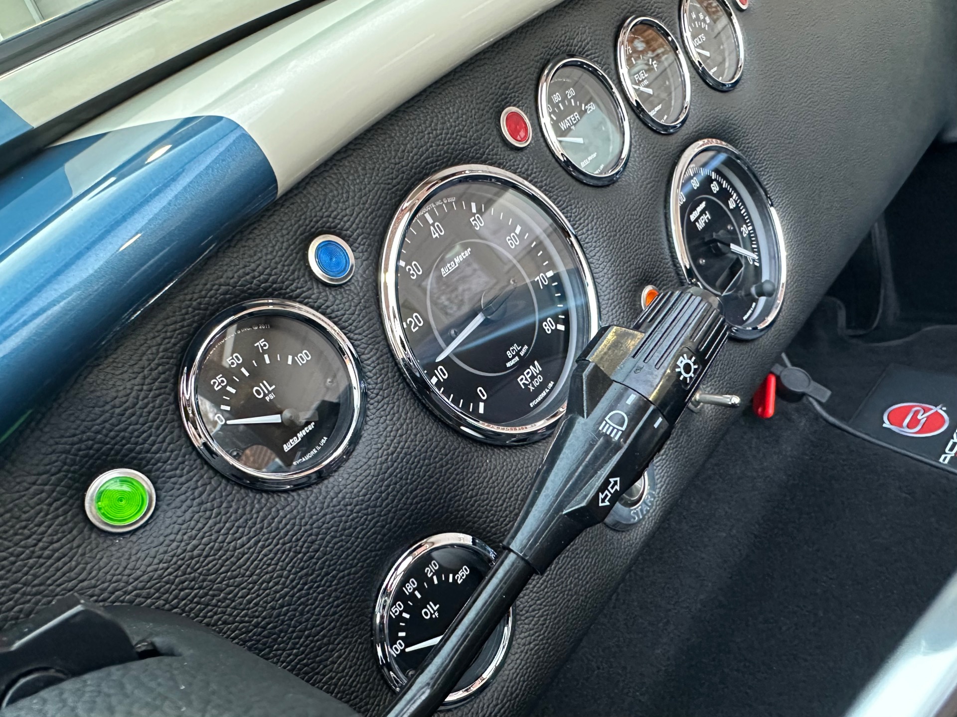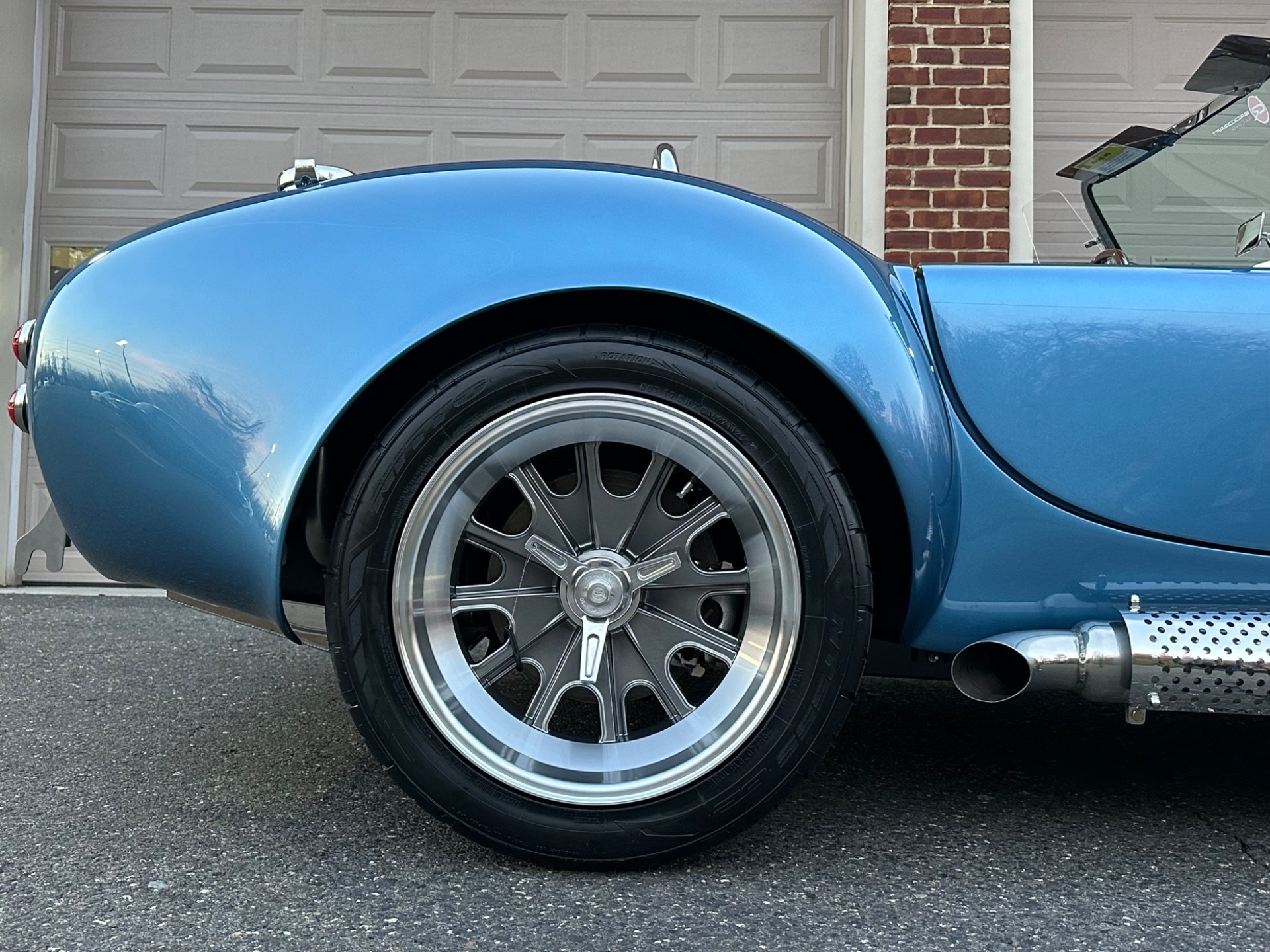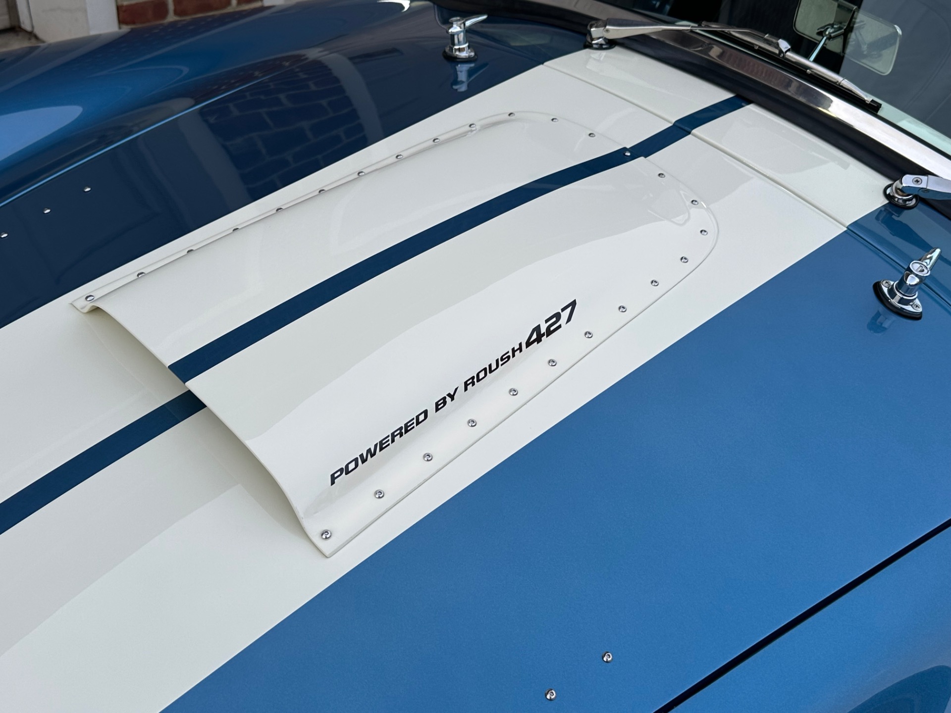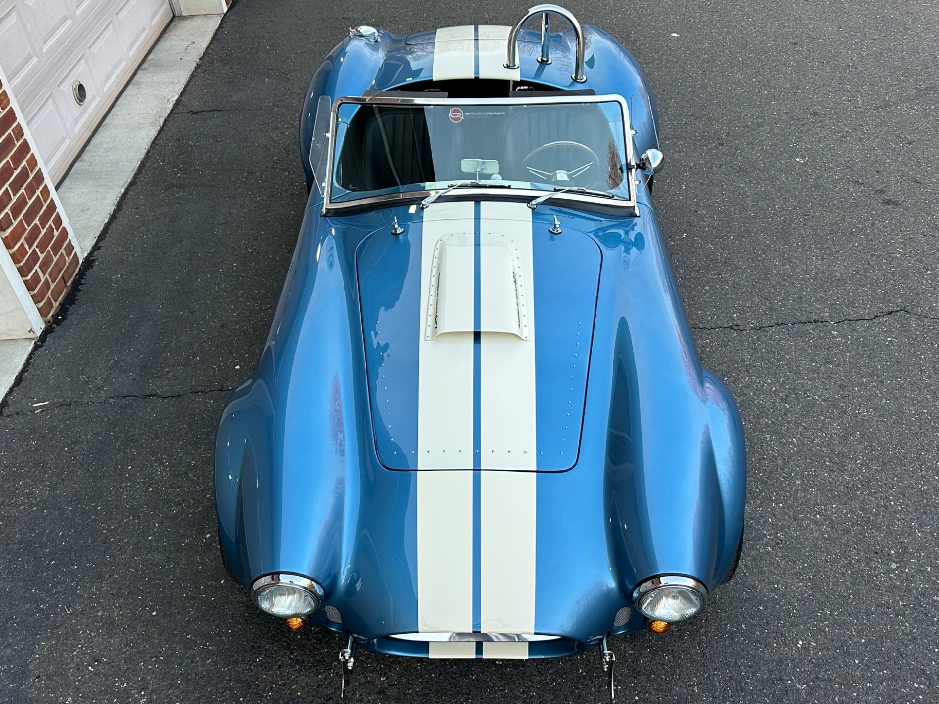 New arrival at Jonathan Motorcars, your Official Backdraft Racing Dealer, this is a brand-new 1965 Backdraft Cobra finished in the legendary Guardsman Blue with Wimbledon White stripes, the iconic combination that instantly calls back to the golden-era Shelby look. It's the kind of paintwork that stops people mid-sentence, and with the stripes carrying the theme even under the hood, the details hit just right from every angle.  At the heart of this Cobra is the Roush Performance 427IR 8-Stack, putting down a thrilling 580 horsepower with the visual drama and throttle response that makes an eight-stack car feel alive in a way few modern builds can match. Open the door and you'll find a cockpit that blends classic style with thoughtful upgrades, including Autometer OEM-style gauges, heated seats, a custom shift knob, and cam-lock style seat belts that feel properly motorsport-inspired.  This one is also equipped exactly the way enthusiasts want itpower steering for confident feel at any speed, remote brake and clutch reservoirs for clean serviceability, and an oil cooler with stainless steel fittings to help keep everything happy when the pace picks up. The build is finished with premium touches like a Raydot mirror, 3M clear film paint protection that helps preserve that show-stopping finish, and the right hardware throughout including an aluminum radiator and aluminum gas tank.  And because these are hand-built, race-inspired cars, Jonathan Motorcars takes delivery preparation seriously. Before this Cobra ever heads to its next owner, it will go through our Delivery Standard: an additional 20-30 hours of in-house inspection, service, and real road testing to thoroughly sort the car and ensure it leaves our facility dialed-in, resolved, and ready to be enjoyed the moment it arrives. We also offer financing options to make the purchase simple, and we can ship fully enclosed anywhere in the USA so your Cobra arrives the right way, safe, protected, and ready for the road.