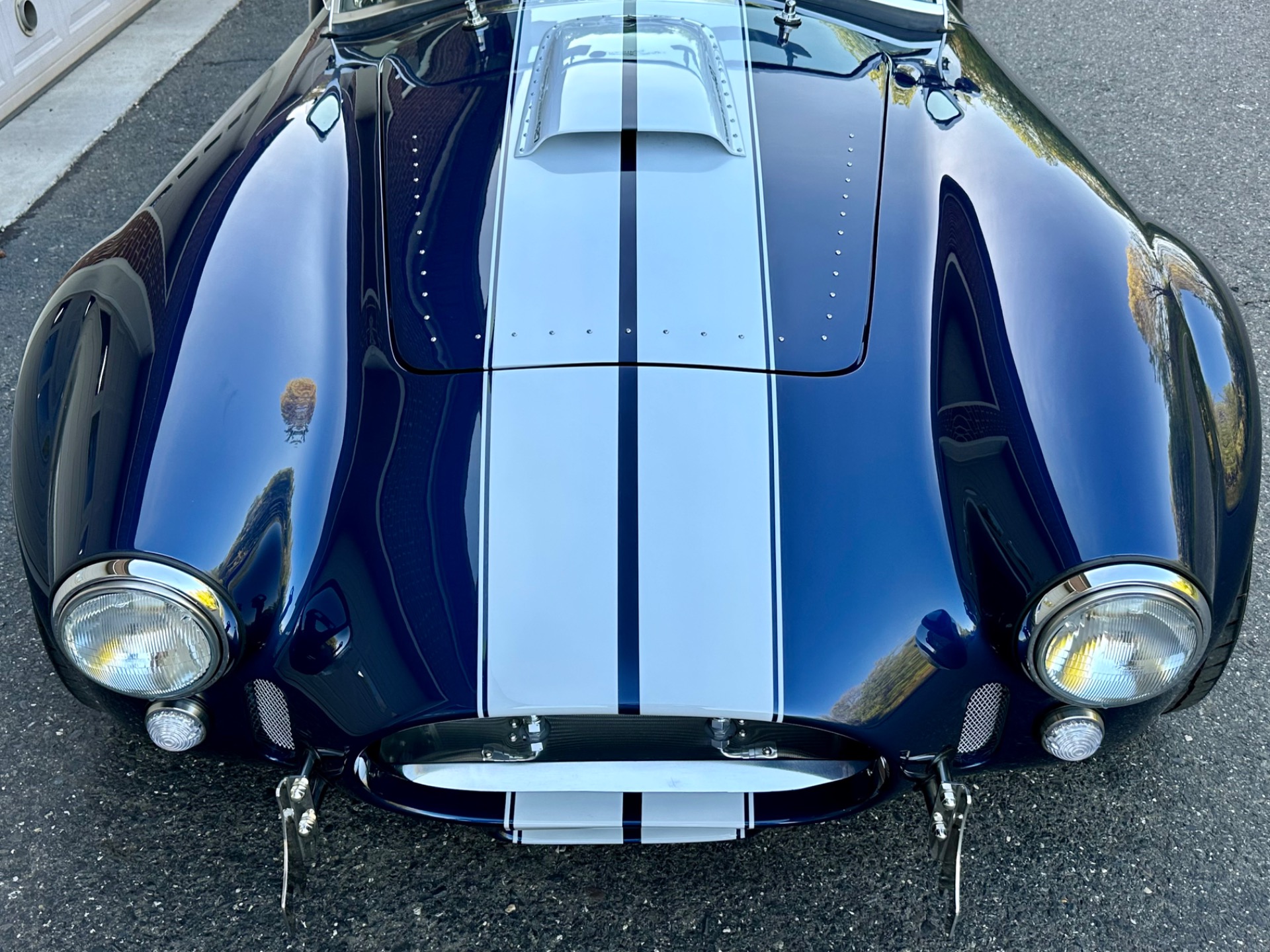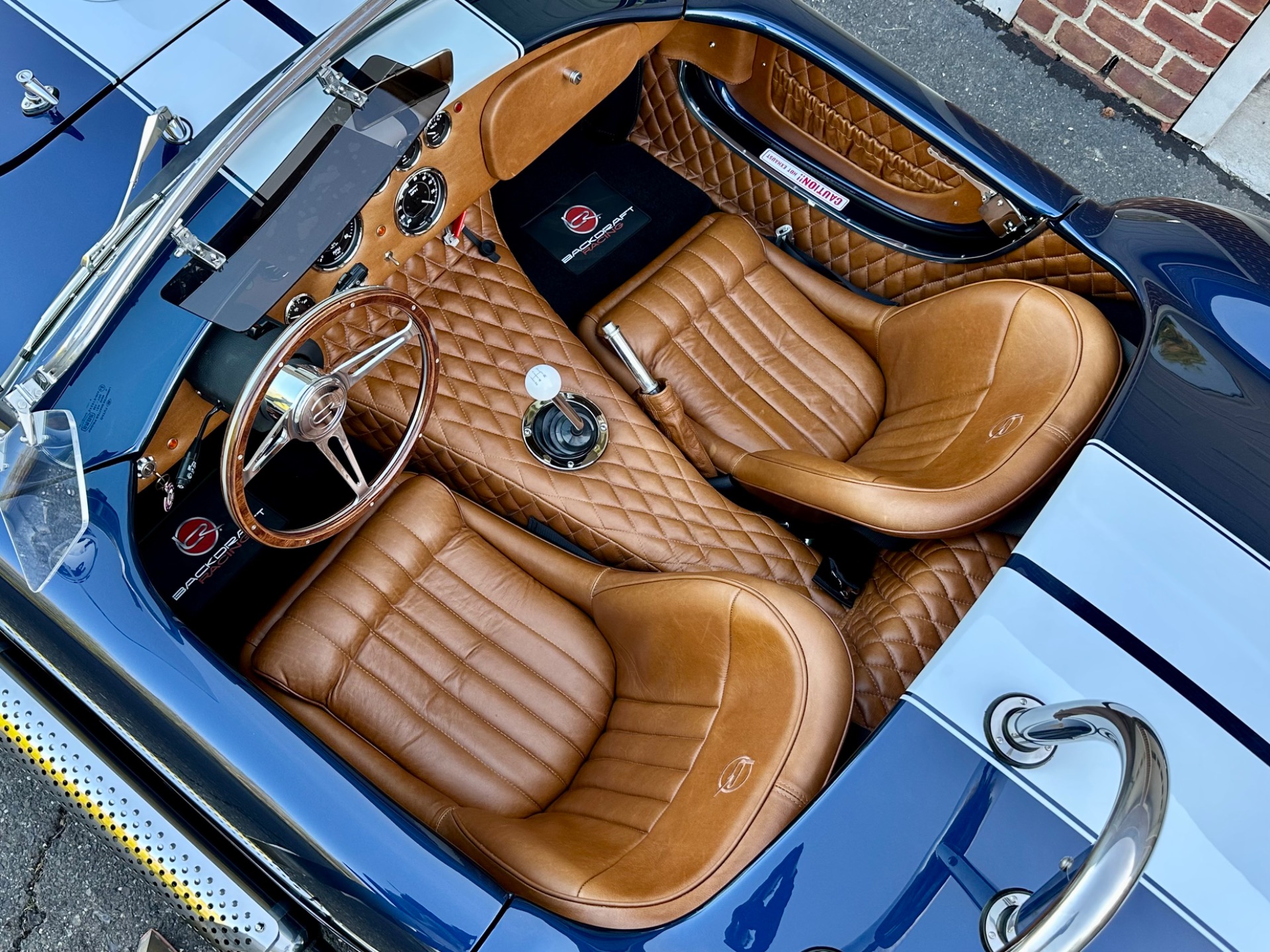 Finished in a stunning Indigo Blue with classic White stripes, this Backdraft Racing Cobra delivers an unmistakable presence that pays tribute to the original while standing out with modern refinement. Inside, the all-new Caramel leather interior adds a sophisticated contrast blending vintage inspiration with a rich, contemporary feel. At the heart of this Cobra is a Roush 427 paired with 8-stack fuel injection, producing an exhilarating 580 horsepower. The result is razor-sharp throttle response, an unmistakable induction sound, and performance that truly lives up to the Cobra name. This example is extensively optioned to enhance both drivability and comfort. Upgrades include power steering, an oil cooler, AutoMeter gauges, and remote brake and clutch reservoirs for improved serviceability. Built in the desirable Big & Tall configuration, it offers additional comfort without compromising the car's aggressive stance and proportions. Additional enhancements such as a 3M clear paint protection film, aluminum gas tank, and aluminum radiator further elevate durability and long-term ownership confidence. As with every Cobra at Jonathan Motorcars, this vehicle undergoes our comprehensive pre-sale inspection and road testing process. Our team dedicates 20-30 hours to carefully sorting and dialing in each car to ensure it meets our exacting standards before delivery. This is a fully sorted, turn-key Cobra that combines iconic styling, modern performance, and the attention to detail that sets Jonathan Motorcars apart. Financing options are available.