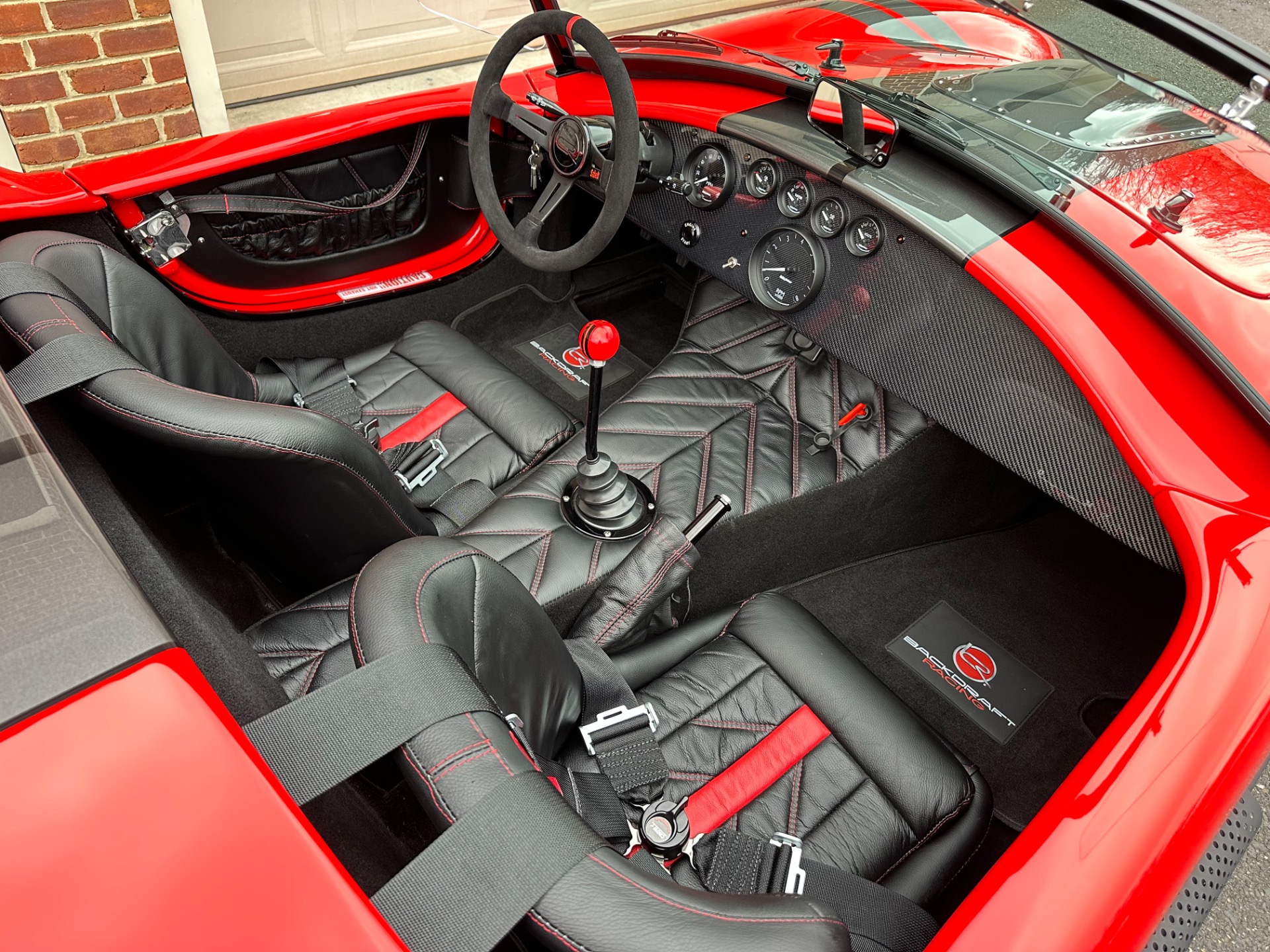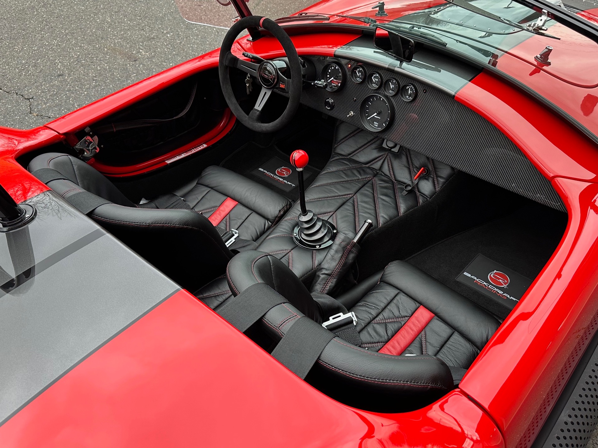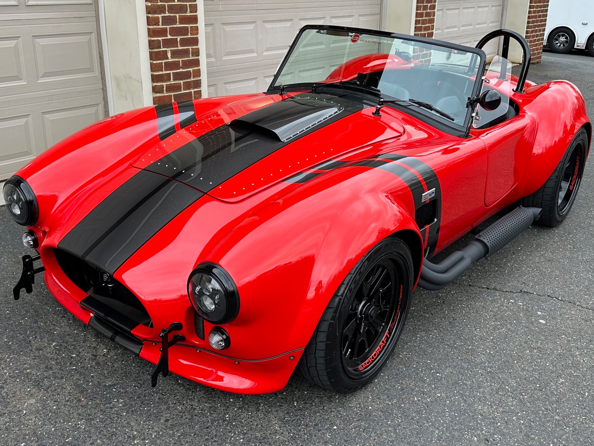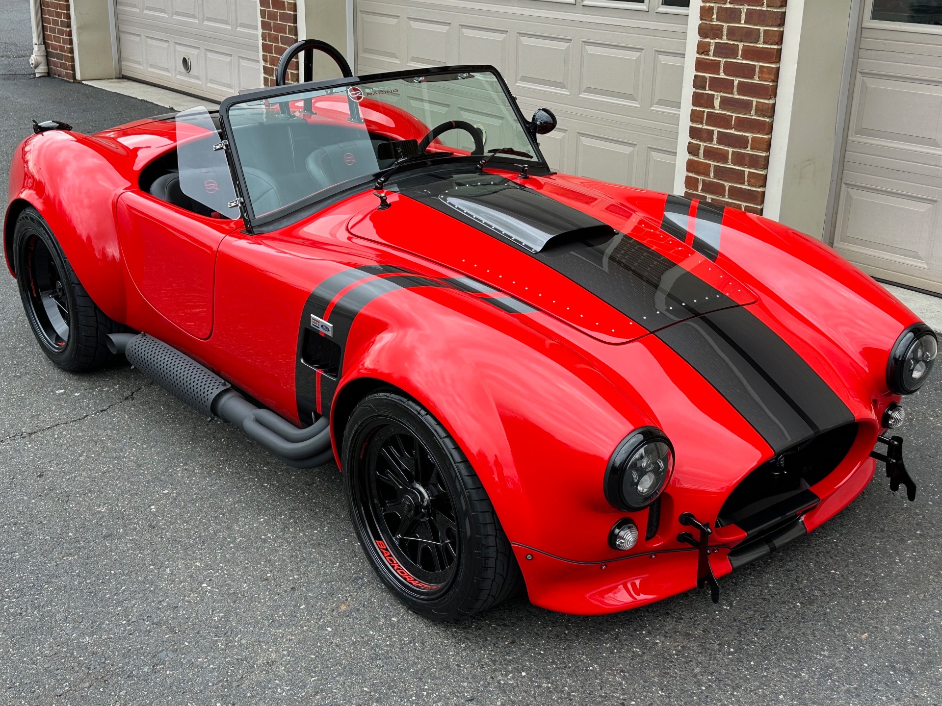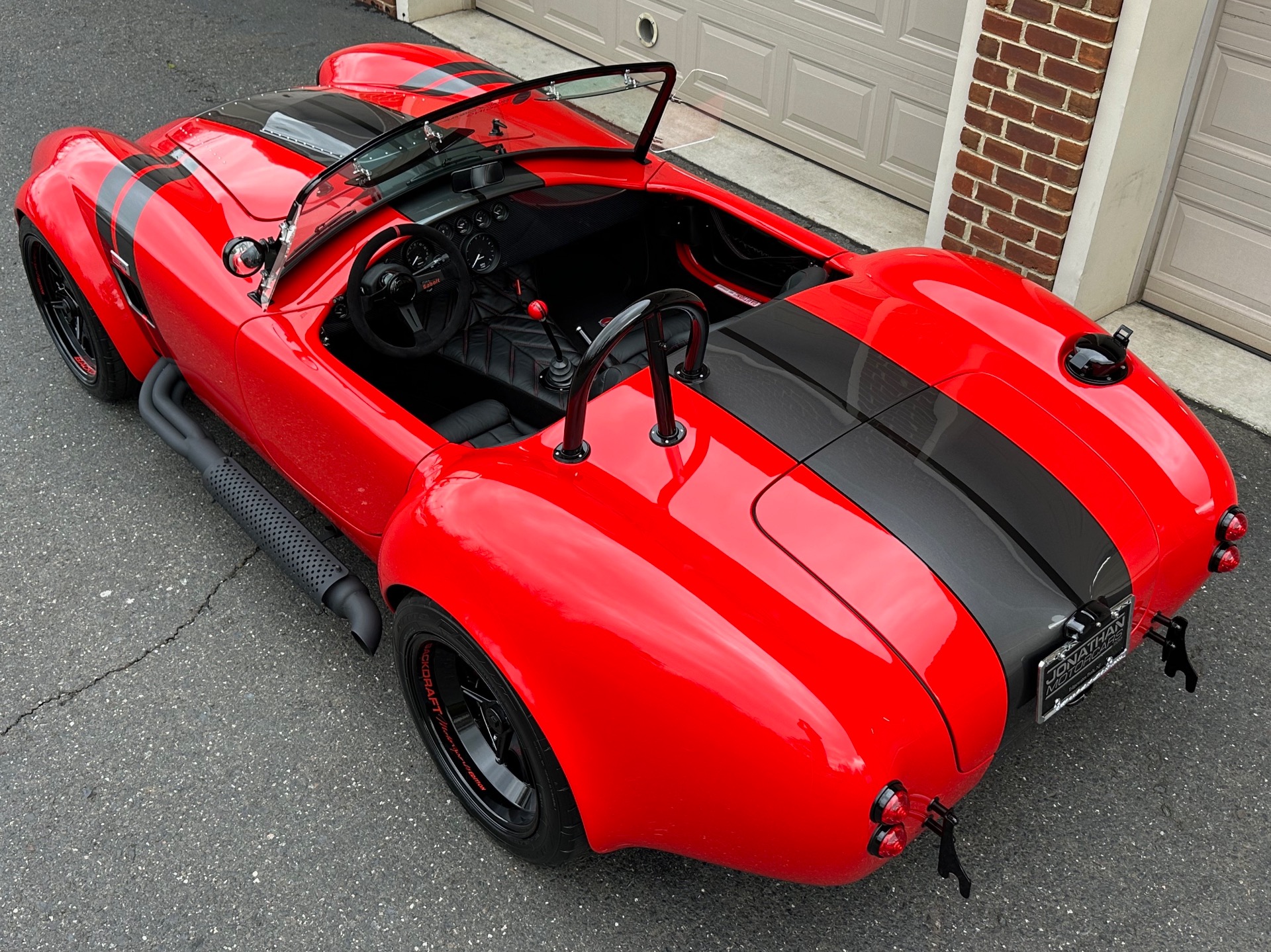 Santa's Sleigh has landed! Introducing the magnificent 1965 Backdraft Racing Cobra 427, now available for sale at Jonathan Motorcars. This exceptional vehicle is a true testament to the timeless beauty and raw power of the Cobra lineage. Prepare to be captivated by its striking Race Red exterior, adorned with sleek grey and black racing stripes, making it a true standout on the road. Under the hood, this Cobra is equipped with the legendary Roush 427R engine, delivering an astonishing 550 horsepower. This means you'll have an abundance of reindeer power at your disposal, ensuring an exhilarating driving experience like no other. The RWD drivetrain further enhances the performance, allowing for precise handling and thrilling acceleration. Step inside the cockpit and be greeted by a stunning black interior with red diagonal accents. The custom diagonal interior adds a touch of sophistication and uniqueness to the cabin, while the heated seats provide comfort during those chilly winter drives. The carbon fiber dash, adorned with carbon gauges, adds a modern and sporty touch to the classic design. This Cobra comes loaded with an array of special features and upgrades. The oil cooler ensures optimal engine performance, while the power steering enhances maneuverability. The remote brake and clutch reservoirs add convenience and ease of use. The blacked-out LED headlights not only provide excellent visibility but also give the vehicle a menacing and aggressive look. Safety is paramount, and this Cobra is equipped with cam lock style seat belts, ensuring you and your passengers are securely fastened during spirited drives. The 3M paint protection ensures that the Race Red paint remains flawless, even in the face of harsh weather conditions. The aluminum gas tank adds durability and reliability to this already exceptional vehicle. This particular Cobra is the big and tall edition, offering ample space and comfort for drivers of all sizes. The custom shift knob adds a touch of personalization, while the battery tender ensures that your Cobra is always ready to hit the road. The black-out package adds a touch of mystery and elegance to the overall aesthetic, making this Cobra truly one-of-a-kind. To top it all off, this Cobra is available for immediate delivery. Whether you're located locally or on the other side of the world, Jonathan Motorcars can arrange financing and shipping to ensure a seamless and hassle-free purchase. Don't miss out on the opportunity to own this extraordinary 1965 Backdraft Racing Cobra 427. Call Andy or Jon today and make your dream a reality!