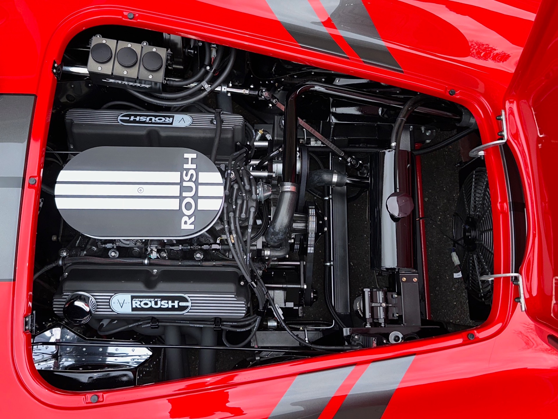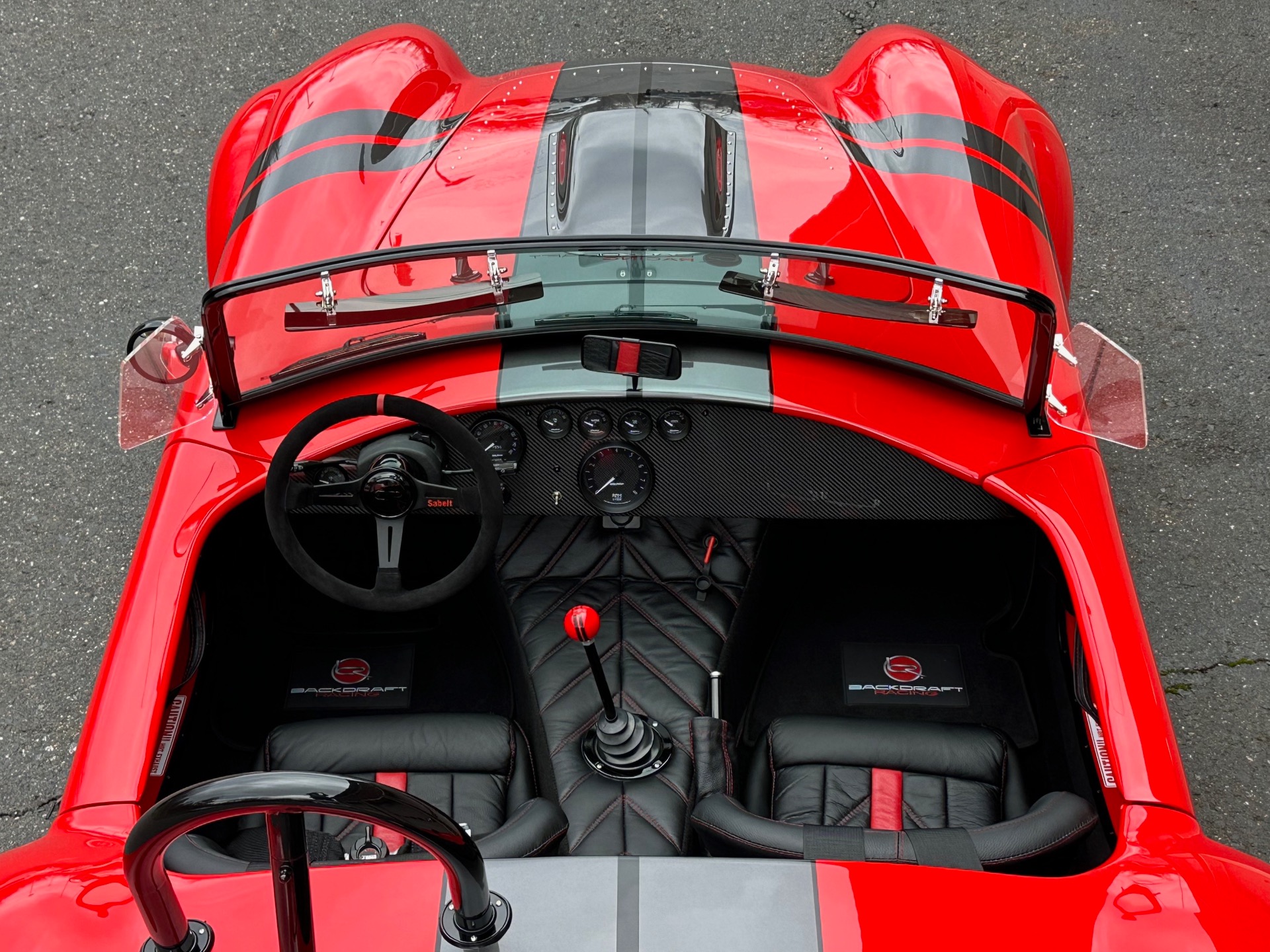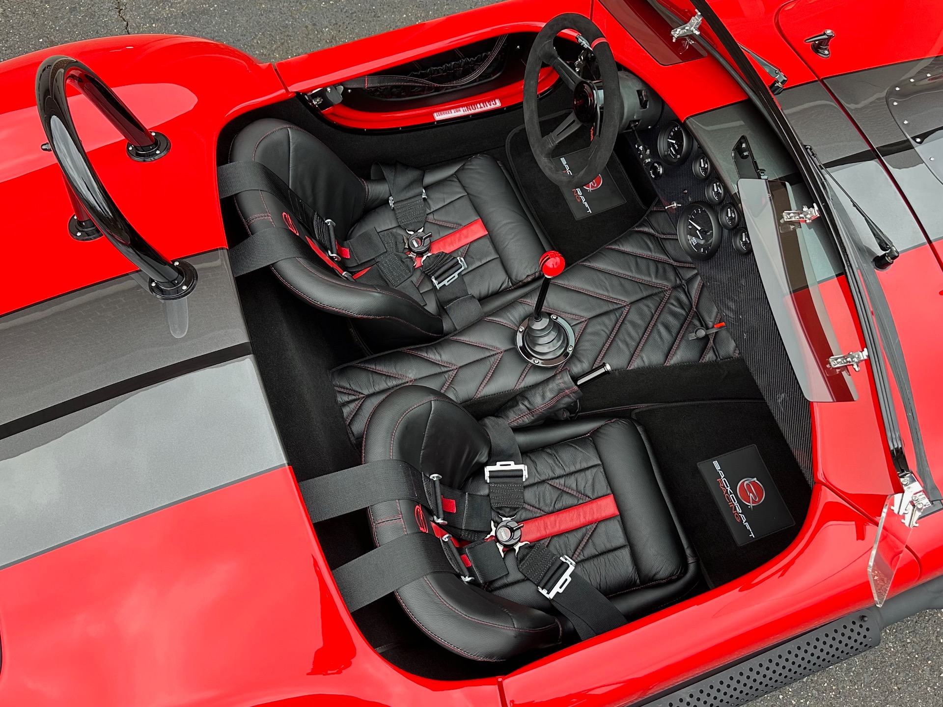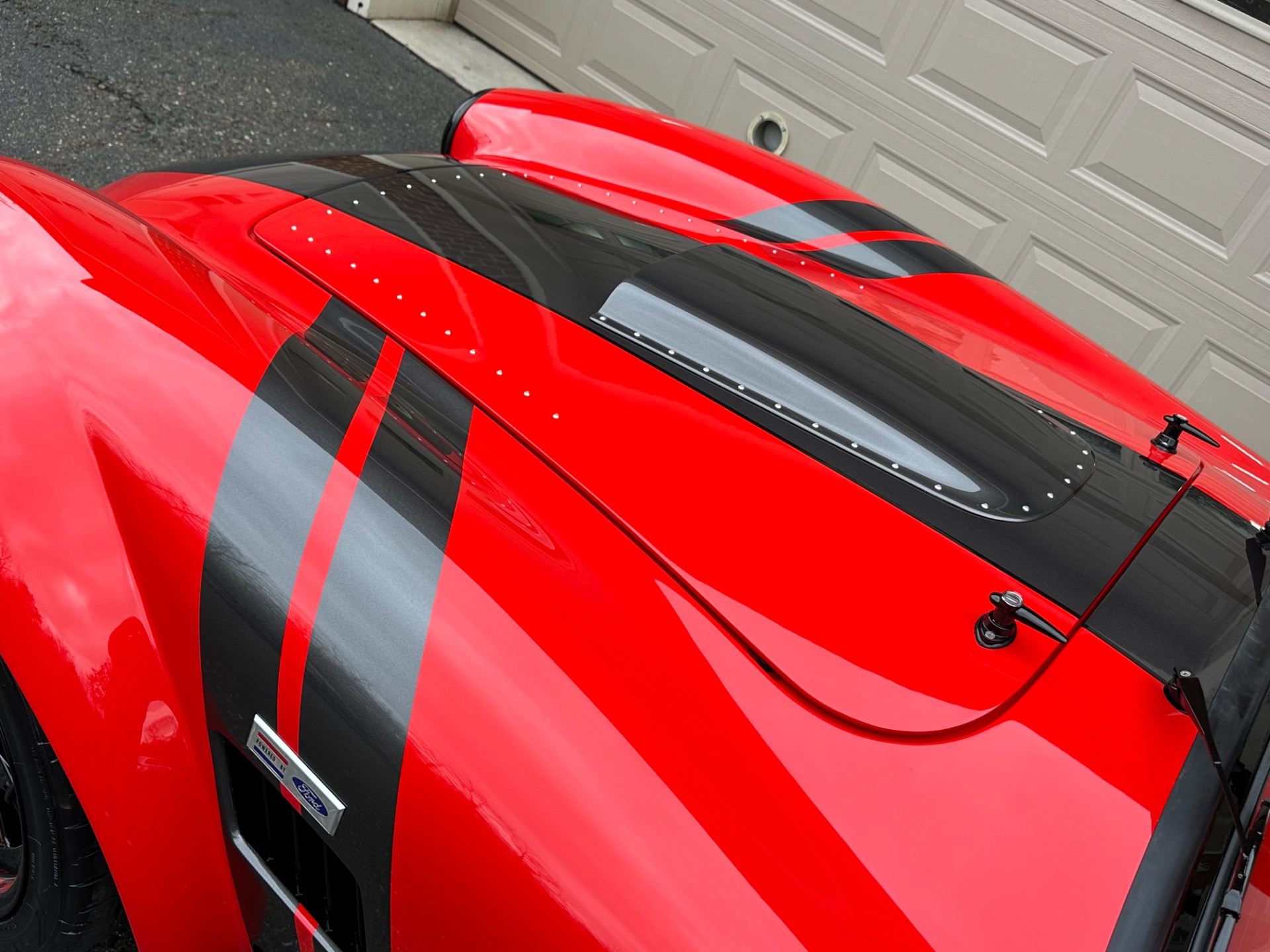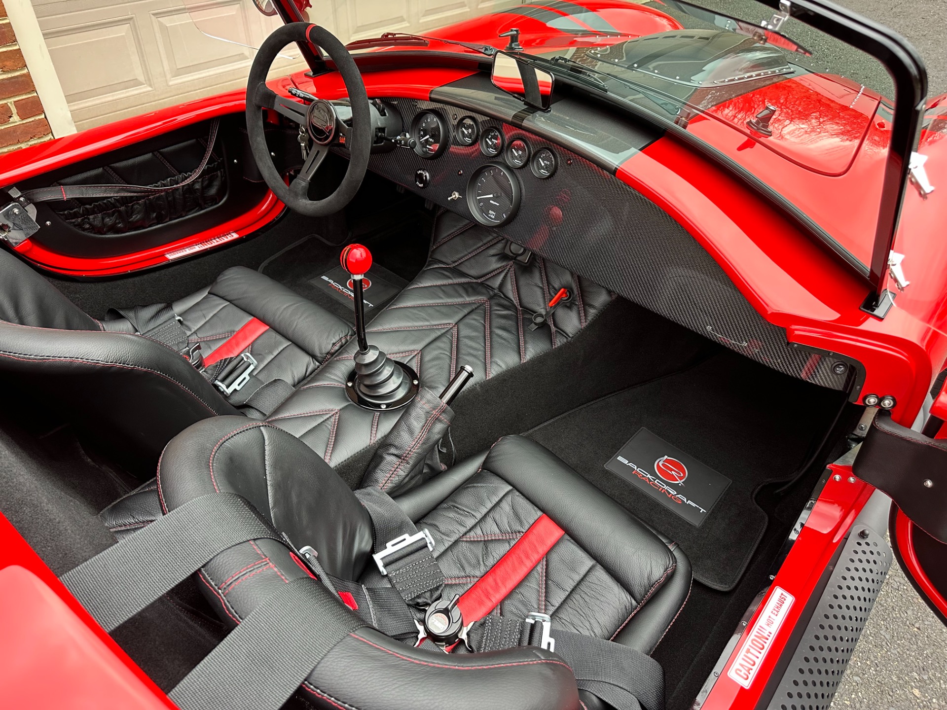 Santa's Sleigh has landed! Introducing the magnificent 1965 Backdraft Racing Cobra 427, now available for sale at Jonathan Motorcars. This exceptional vehicle is a true testament to the timeless beauty and raw power of the Cobra lineage. Prepare to be captivated by its striking Race Red exterior, adorned with sleek grey and black racing stripes, making it a true standout on the road. Under the hood, this Cobra is equipped with the legendary Roush 427R engine, delivering an astonishing 550 horsepower. This means you'll have an abundance of reindeer power at your disposal, ensuring an exhilarating driving experience like no other. The RWD drivetrain further enhances the performance, allowing for precise handling and thrilling acceleration. Step inside the cockpit and be greeted by a stunning black interior with red diagonal accents. The custom diagonal interior adds a touch of sophistication and uniqueness to the cabin, while the heated seats provide comfort during those chilly winter drives. The carbon fiber dash, adorned with carbon gauges, adds a modern and sporty touch to the classic design. This Cobra comes loaded with an array of special features and upgrades. The oil cooler ensures optimal engine performance, while the power steering enhances maneuverability. The remote brake and clutch reservoirs add convenience and ease of use. The blacked-out LED headlights not only provide excellent visibility but also give the vehicle a menacing and aggressive look. Safety is paramount, and this Cobra is equipped with cam lock style seat belts, ensuring you and your passengers are securely fastened during spirited drives. The 3M paint protection ensures that the Race Red paint remains flawless, even in the face of harsh weather conditions. The aluminum gas tank adds durability and reliability to this already exceptional vehicle. This particular Cobra is the big and tall edition, offering ample space and comfort for drivers of all sizes. The custom shift knob adds a touch of personalization, while the battery tender ensures that your Cobra is always ready to hit the road. The black-out package adds a touch of mystery and elegance to the overall aesthetic, making this Cobra truly one-of-a-kind. To top it all off, this Cobra is available for immediate delivery. Whether you're located locally or on the other side of the world, Jonathan Motorcars can arrange financing and shipping to ensure a seamless and hassle-free purchase. Don't miss out on the opportunity to own this extraordinary 1965 Backdraft Racing Cobra 427. Call Andy or Jon today and make your dream a reality!