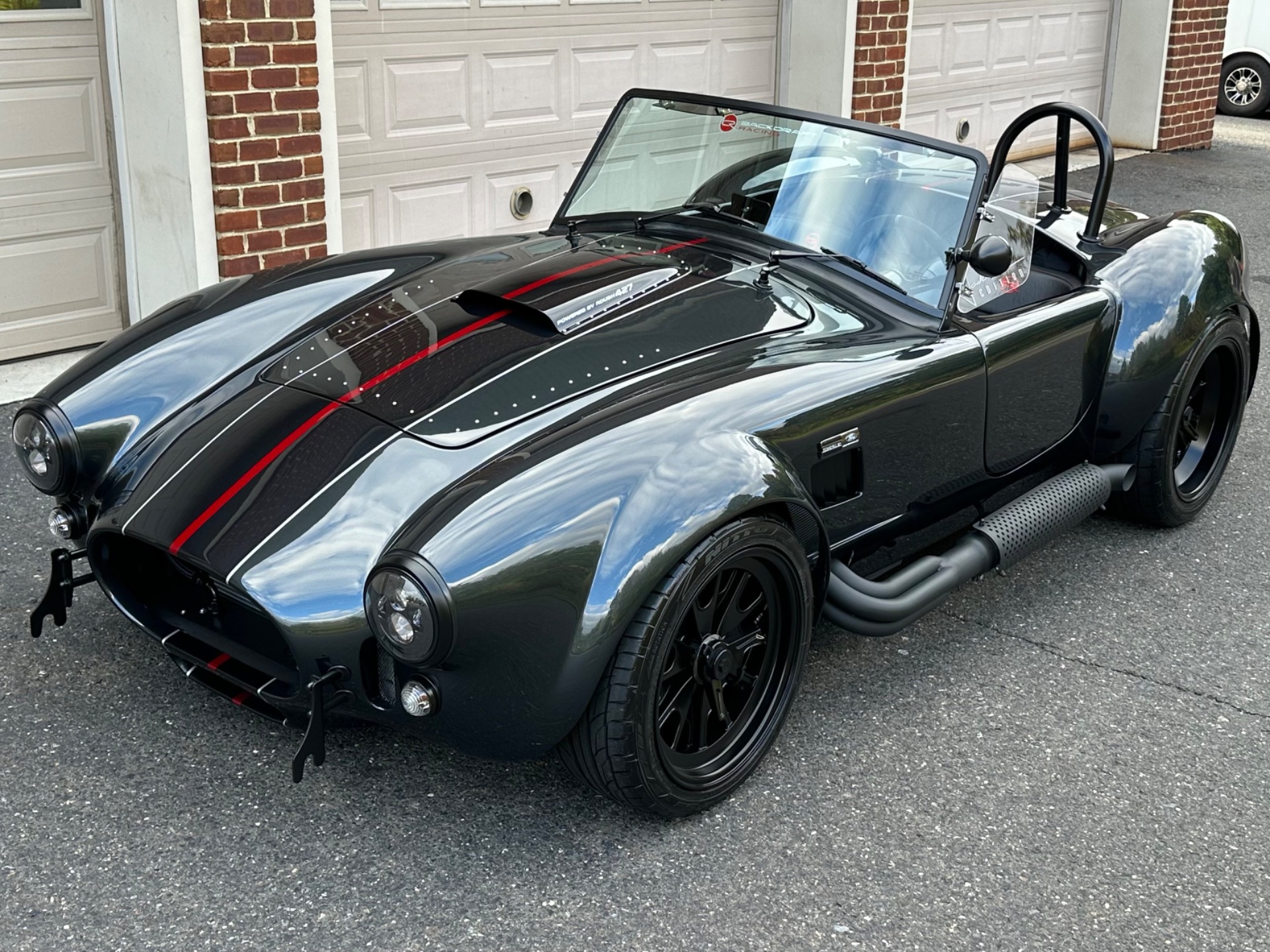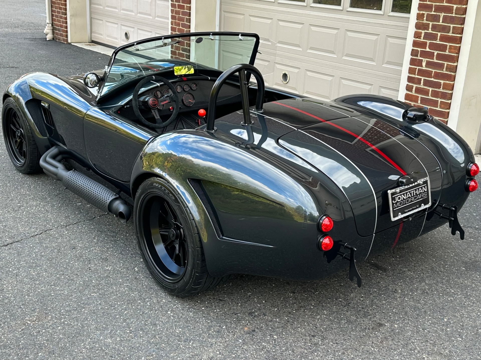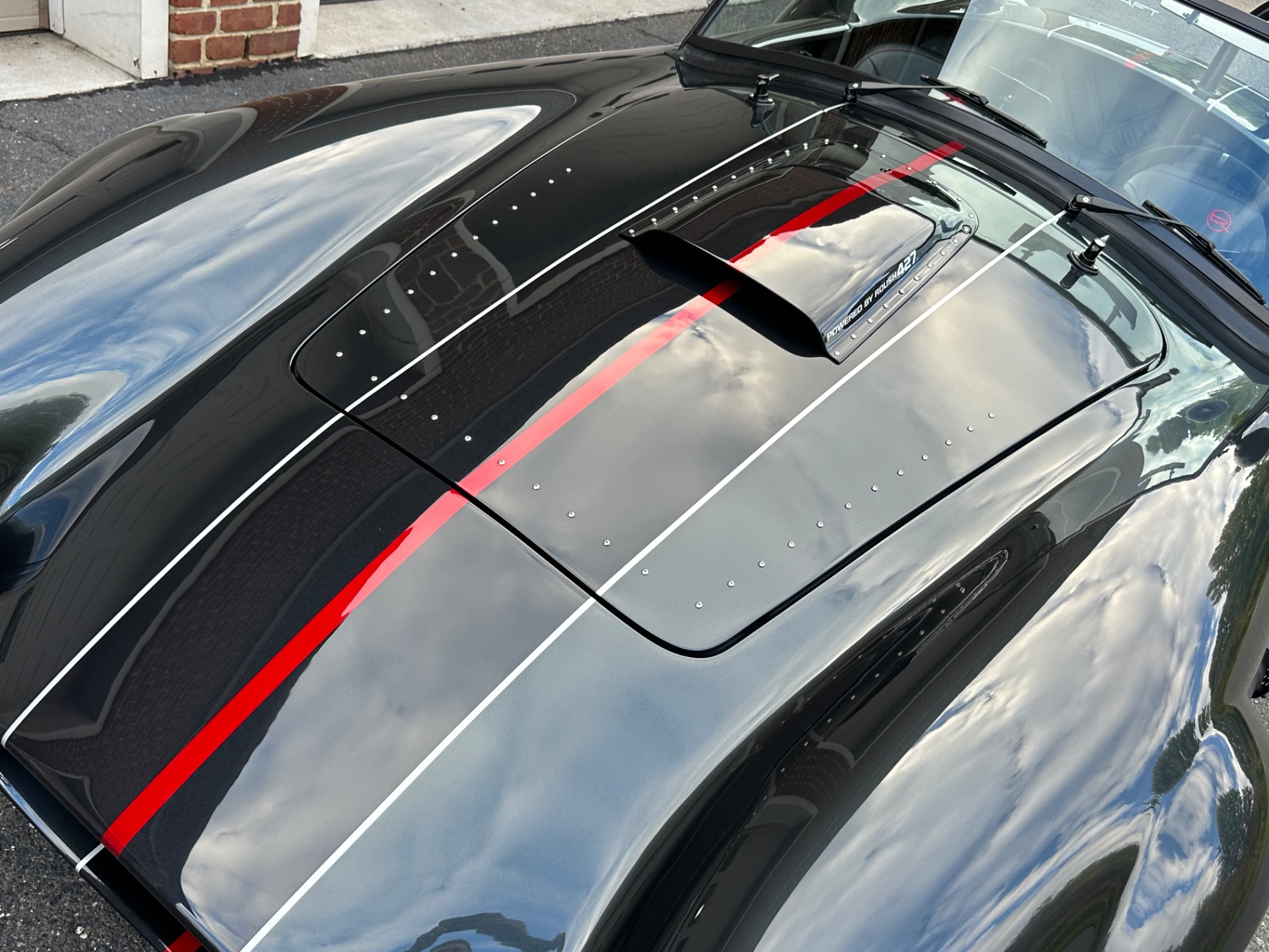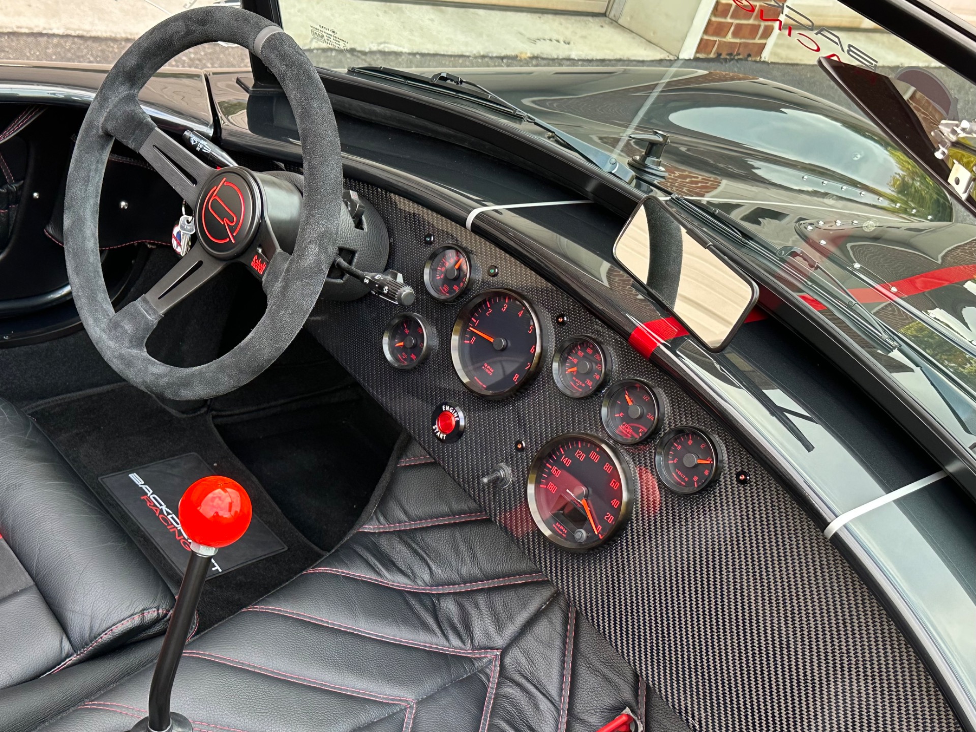 1965 Backdraft Racing Cobra Carbon Steel Gray Metallic Roush 427R. A brand new arrival at Jonathan Motorcars, this 1965 Backdraft Racing Cobra is a stunning tribute to the original 1965 Shelby Cobra reimagined with modern performance, premium materials, and a one-of-a-kind color combination. Finished in Carbon Steel Gray Metallic with Volcano Black stripes and a striking Soul Red center stripe, this Cobra is among the first we've delivered in this bold, high-contrast configuration. Inside, the cockpit features black leather with red contrast stitching, Alcantara seat inserts, and unique diagonal seat patterns with a rear stitched panel giving the interior a custom-finished look. Under the hood, the legendary Roush 427R V8 delivers over 550 horsepower, mated to a Tremec 5-speed TRX manual transmission for an authentic, analog driving experience. The sound, feel, and power delivery are exactly what you'd expect from a hand-built American icon refined by modern engineering. Upgraded options include power steering, an oil cooler, blacked-out LED headlights, cam lock style seat belts, Speedhut gauges, a suede Sabelt steering wheel, custom shift knob, Raydot mirror, aluminum gas tank, carbon fiber e-brake recess, clutch and brake fluid remote reservoirs, and black engine cladding. The GT body and clear film paint protection finish off the exterior with both style and durability, while a gray-coated frame adds a clean, modern touch underneath. Jonathan Motorcars has proudly been an official Backdraft Racing dealer for over 13 years and is now the highest volume dealer in the USA. Each Cobra we deliver undergoes a meticulous quality assurance process to ensure it's nothing short of perfect when it arrives at your door. We offer global shipping and financing options to make your dream Cobra a reality. Own a piece of American automotive history built with precision, delivered with passion. Buy with confidence from JMC.