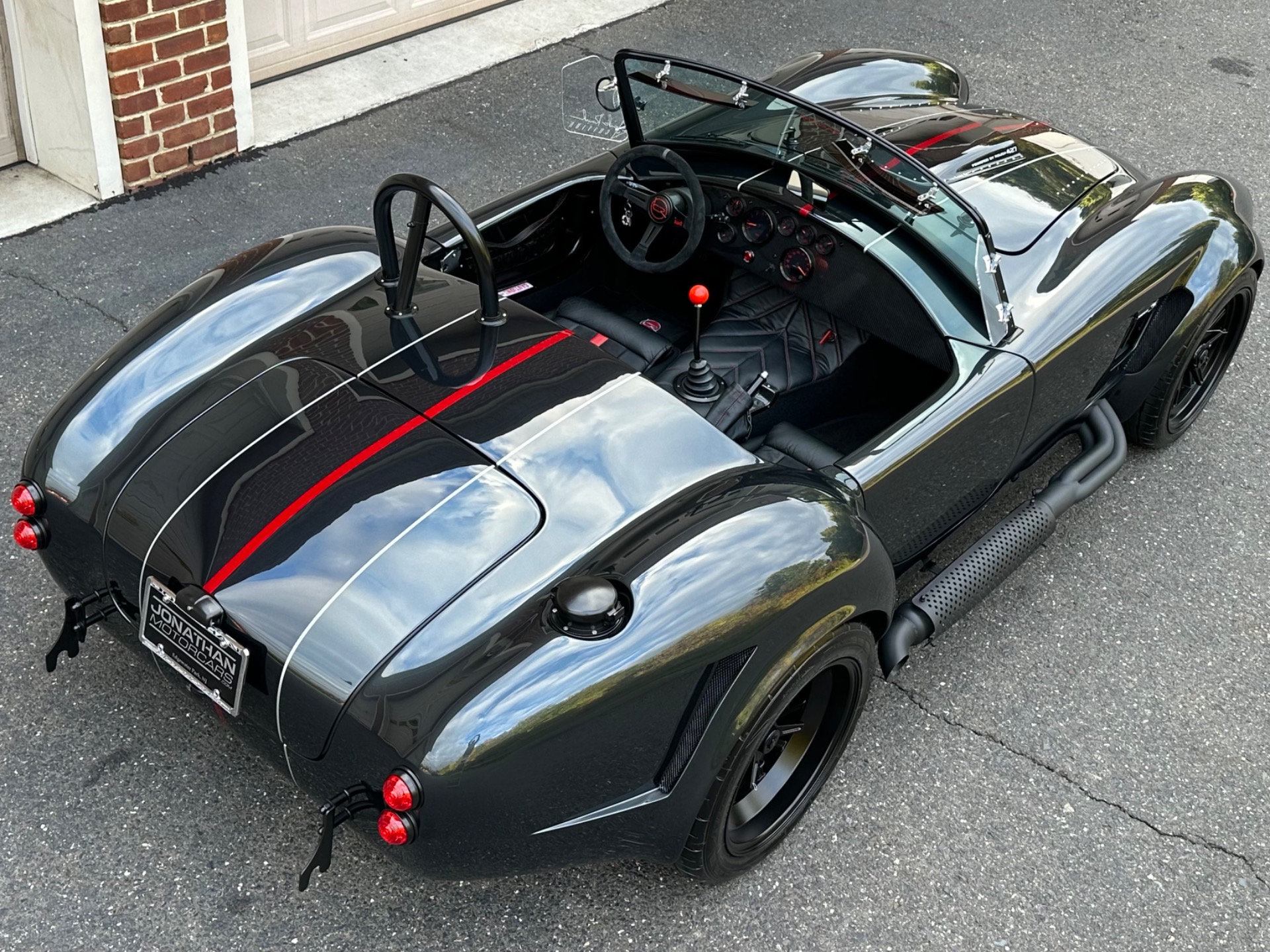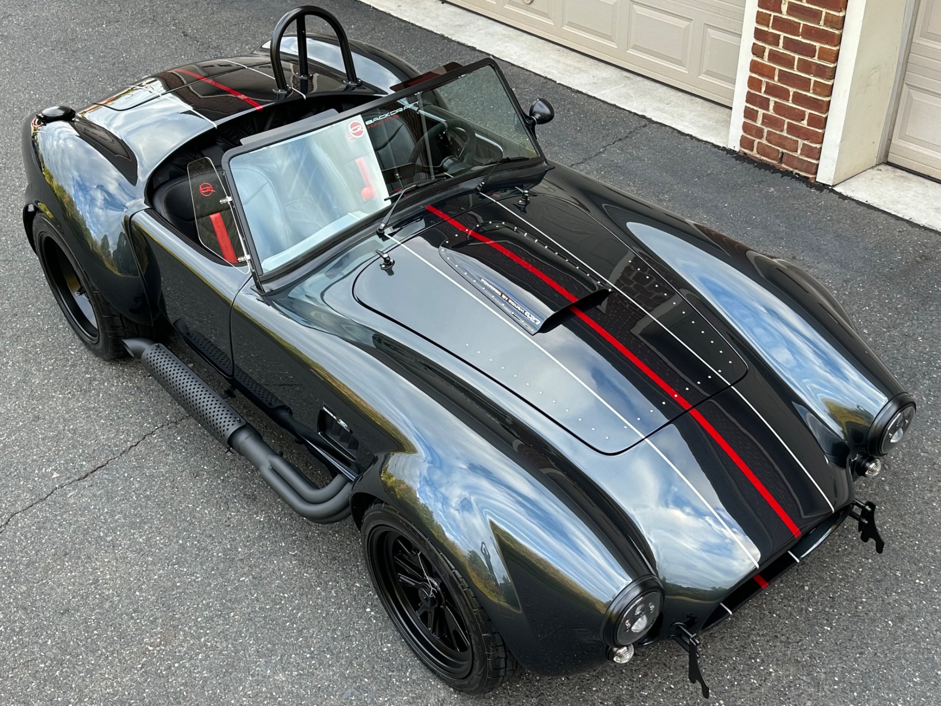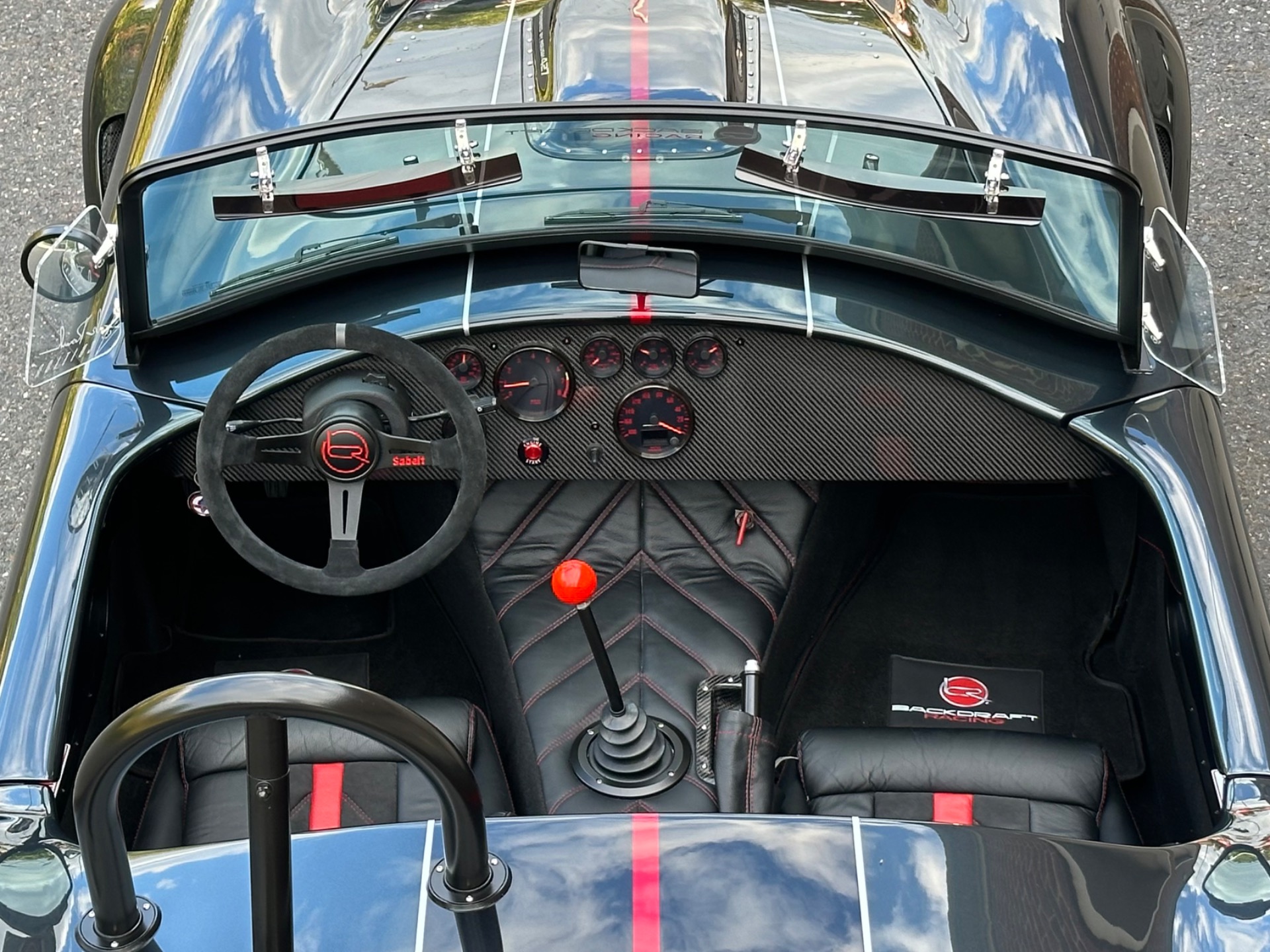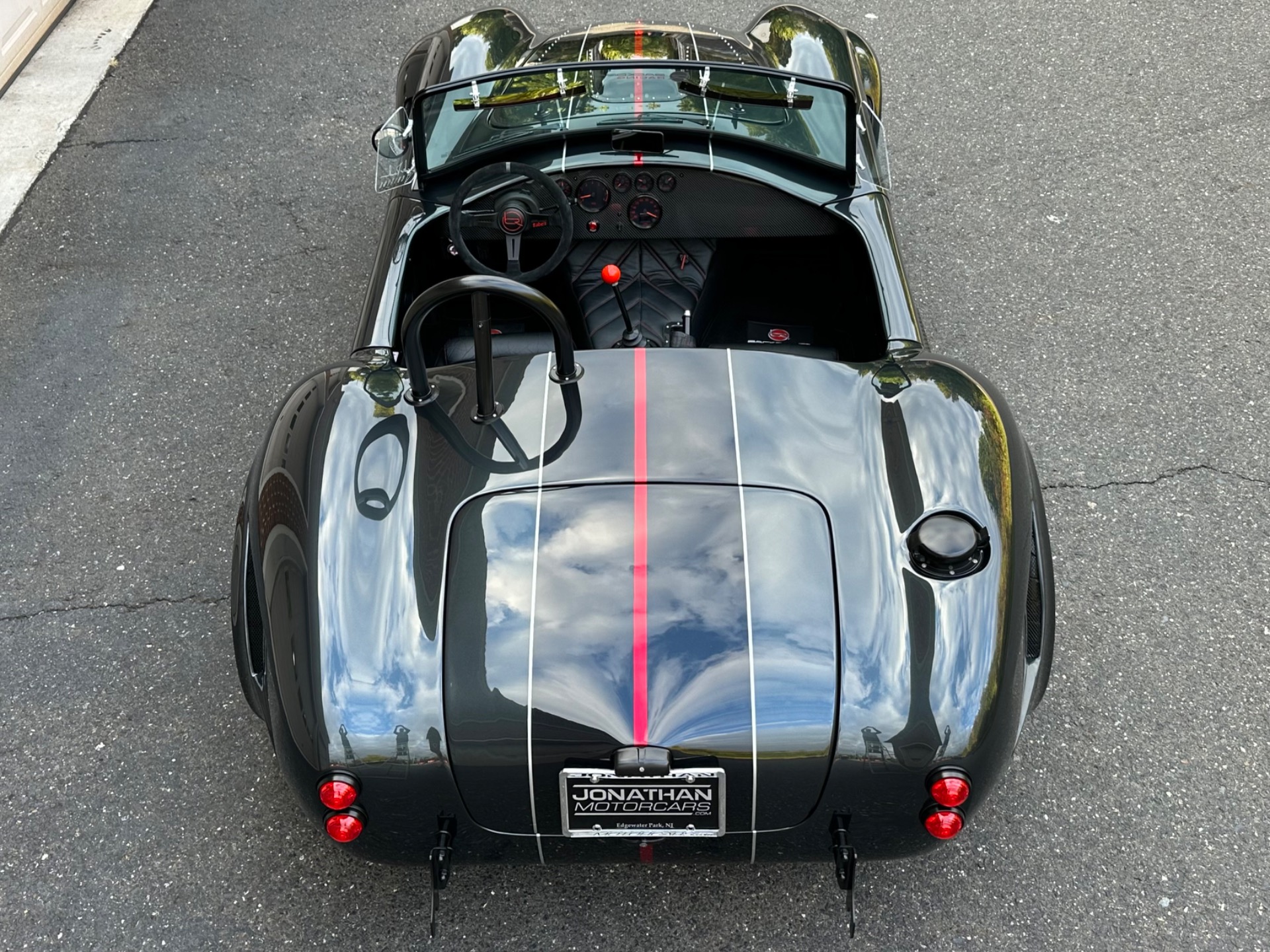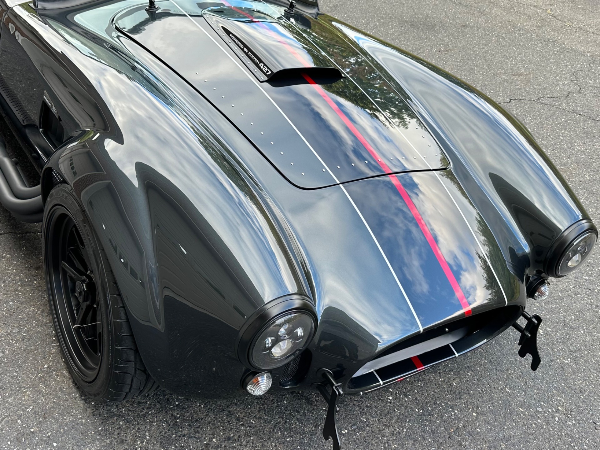 1965 Backdraft Racing Cobra Carbon Steel Gray Metallic Roush 427R. A brand new arrival at Jonathan Motorcars, this 1965 Backdraft Racing Cobra is a stunning tribute to the original 1965 Shelby Cobra reimagined with modern performance, premium materials, and a one-of-a-kind color combination. Finished in Carbon Steel Gray Metallic with Volcano Black stripes and a striking Soul Red center stripe, this Cobra is among the first we've delivered in this bold, high-contrast configuration. Inside, the cockpit features black leather with red contrast stitching, Alcantara seat inserts, and unique diagonal seat patterns with a rear stitched panel giving the interior a custom-finished look. Under the hood, the legendary Roush 427R V8 delivers over 550 horsepower, mated to a Tremec 5-speed TRX manual transmission for an authentic, analog driving experience. The sound, feel, and power delivery are exactly what you'd expect from a hand-built American icon refined by modern engineering. Upgraded options include power steering, an oil cooler, blacked-out LED headlights, cam lock style seat belts, Speedhut gauges, a suede Sabelt steering wheel, custom shift knob, Raydot mirror, aluminum gas tank, carbon fiber e-brake recess, clutch and brake fluid remote reservoirs, and black engine cladding. The GT body and clear film paint protection finish off the exterior with both style and durability, while a gray-coated frame adds a clean, modern touch underneath. Jonathan Motorcars has proudly been an official Backdraft Racing dealer for over 13 years and is now the highest volume dealer in the USA. Each Cobra we deliver undergoes a meticulous quality assurance process to ensure it's nothing short of perfect when it arrives at your door. We offer global shipping and financing options to make your dream Cobra a reality. Own a piece of American automotive history built with precision, delivered with passion. Buy with confidence from JMC.