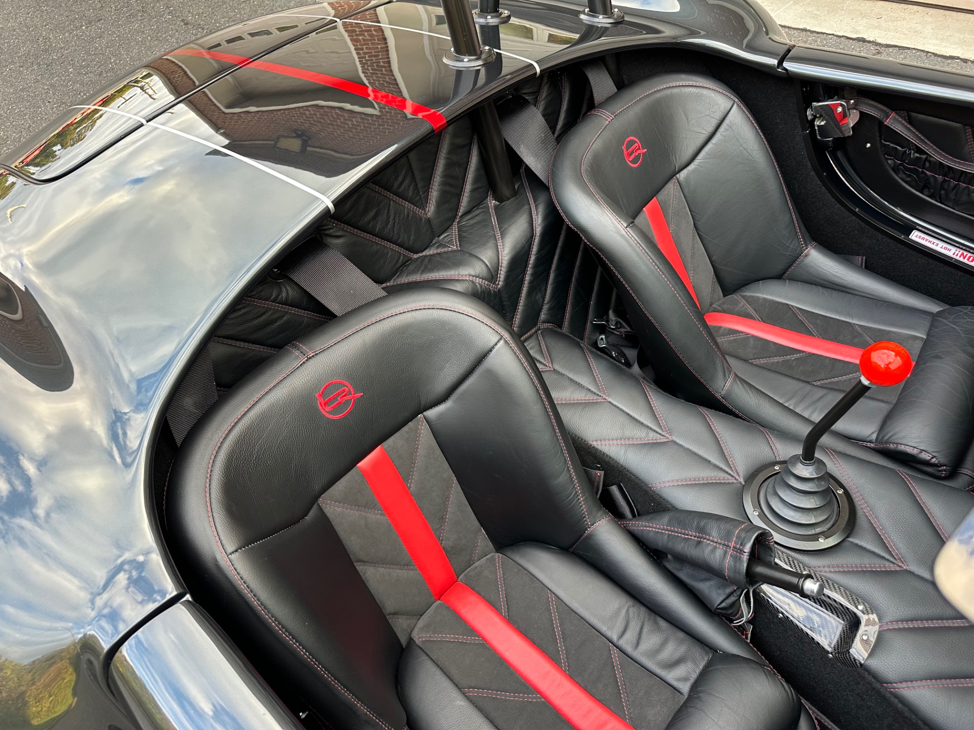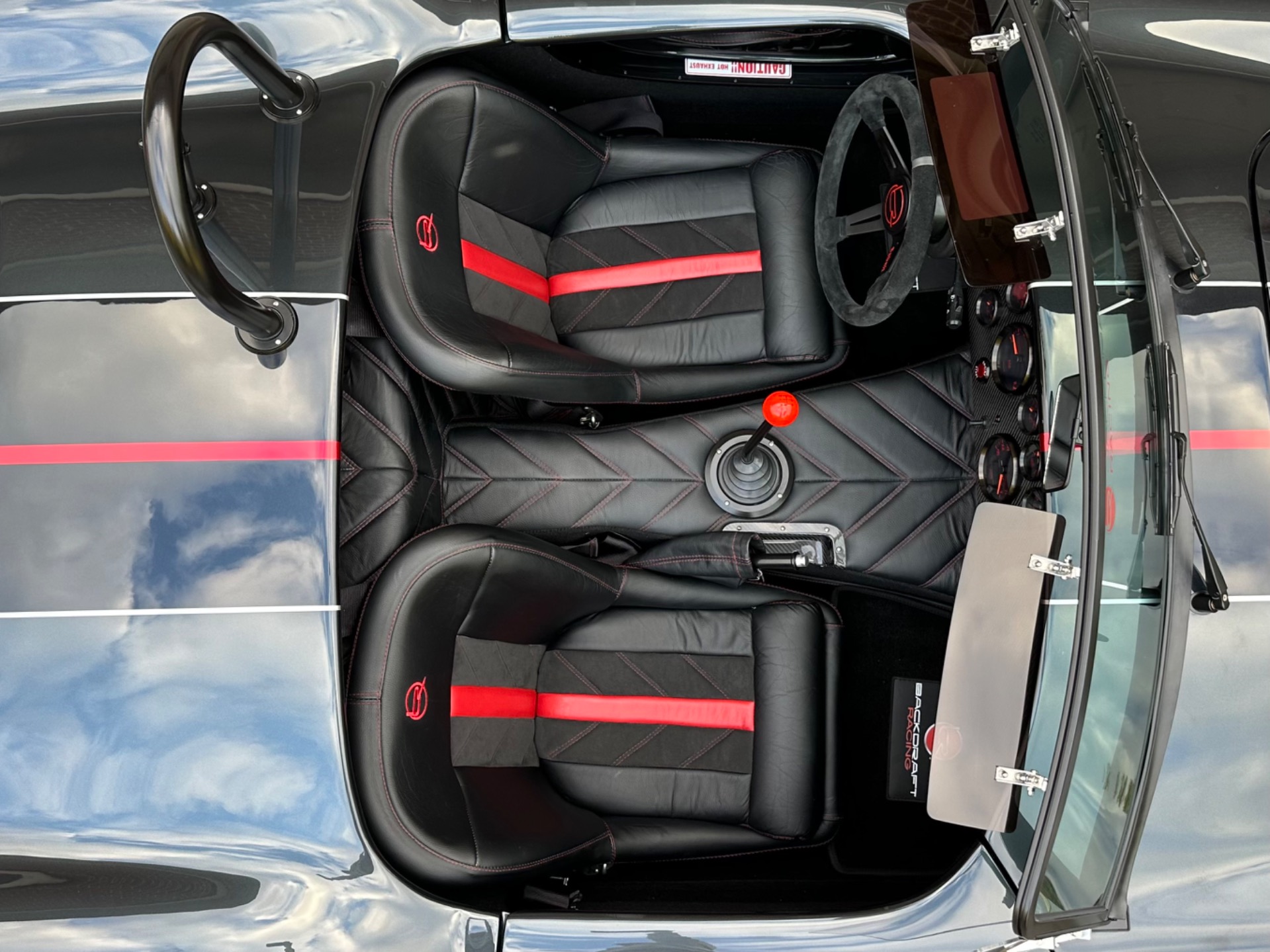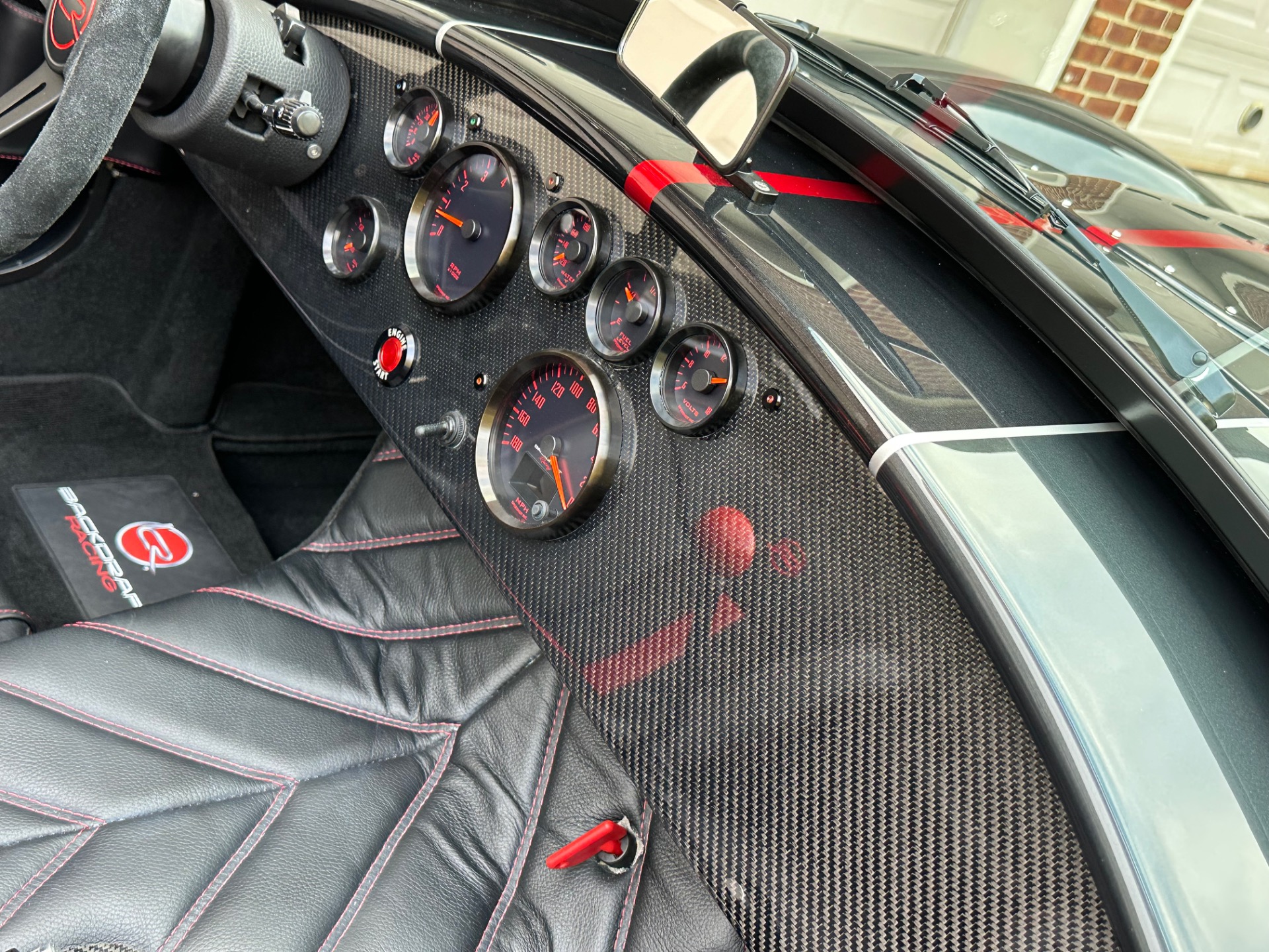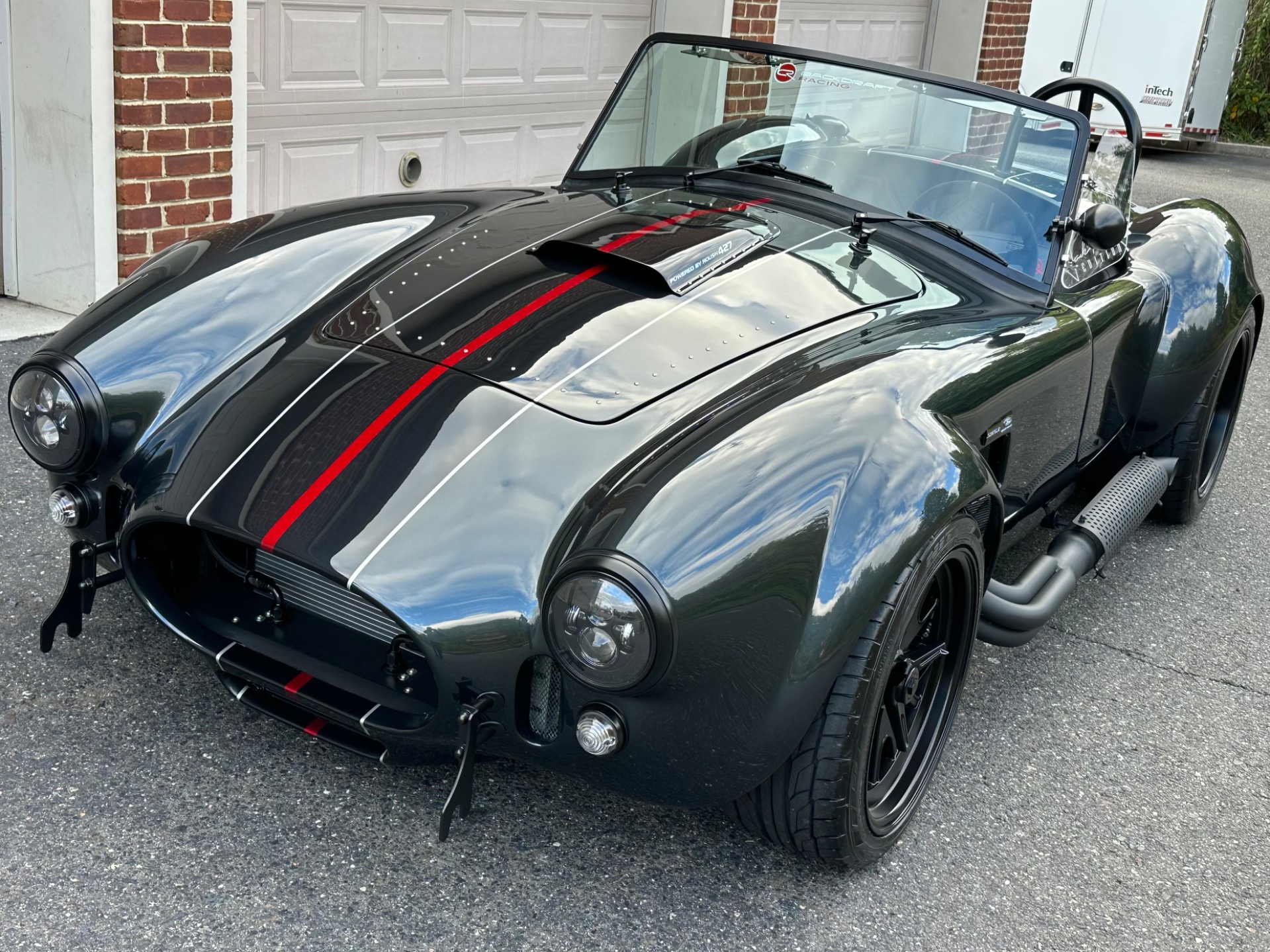 1965 Backdraft Racing Cobra Carbon Steel Gray Metallic Roush 427R. A brand new arrival at Jonathan Motorcars, this 1965 Backdraft Racing Cobra is a stunning tribute to the original 1965 Shelby Cobra reimagined with modern performance, premium materials, and a one-of-a-kind color combination. Finished in Carbon Steel Gray Metallic with Volcano Black stripes and a striking Soul Red center stripe, this Cobra is among the first we've delivered in this bold, high-contrast configuration. Inside, the cockpit features black leather with red contrast stitching, Alcantara seat inserts, and unique diagonal seat patterns with a rear stitched panel giving the interior a custom-finished look. Under the hood, the legendary Roush 427R V8 delivers over 550 horsepower, mated to a Tremec 5-speed TRX manual transmission for an authentic, analog driving experience. The sound, feel, and power delivery are exactly what you'd expect from a hand-built American icon refined by modern engineering. Upgraded options include power steering, an oil cooler, blacked-out LED headlights, cam lock style seat belts, Speedhut gauges, a suede Sabelt steering wheel, custom shift knob, Raydot mirror, aluminum gas tank, carbon fiber e-brake recess, clutch and brake fluid remote reservoirs, and black engine cladding. The GT body and clear film paint protection finish off the exterior with both style and durability, while a gray-coated frame adds a clean, modern touch underneath. Jonathan Motorcars has proudly been an official Backdraft Racing dealer for over 13 years and is now the highest volume dealer in the USA. Each Cobra we deliver undergoes a meticulous quality assurance process to ensure it's nothing short of perfect when it arrives at your door. We offer global shipping and financing options to make your dream Cobra a reality. Own a piece of American automotive history built with precision, delivered with passion. Buy with confidence from JMC.