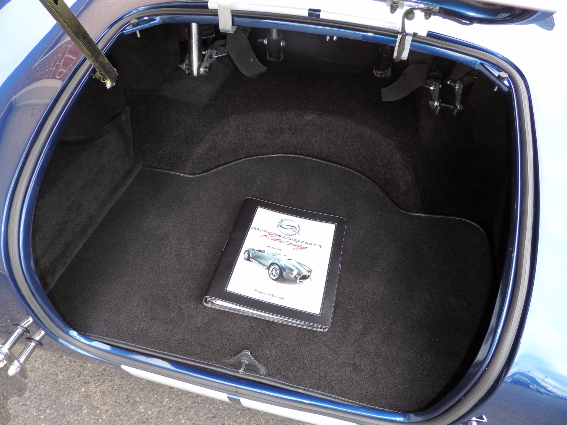 Backdraft Racing Cobra in the Iconic Indigo Blue Paired with Bright White Stripes. Optional Factory Upgrades Include: Iconic 427s 480hp V8 with Tremec's T5 Transmission Package ($20,000) - Full 3M Paint Protection on Rear Fenders, and Doors ($1,250) - Aluminum Gastank Upgrade w/ External Pump ($500) - Ceramic Coated Headers ($350) - Autometer Gauge Upgrade ($600) - Cam-Lock Seat Belts ($440) - Polished Raydot Driver Mirror ($145) - Cobra Steering Wheel Center ($85) - and Color Matching Classic Cobra Shift Knob ($65). This Timeless Beauty also comes with: 18inch True Center-locking Knock-off Wheels - 4 Point Adjustable Coilover Suspension - Mono Lita Genuine Wood Steering Wheel - BDR Full Leather Seats - Push Button Start - BDR Billet Steering Badge - Leather Wrapped Dashboard - Windshield Wipers - Battery Cut-off Switch - Locking Aluminum Gas Cap - Polished Trim Package - and Much More. This Cobra is Fully Serviced and Detailed. Home Transport at No Cost for All Local Clients within 100 Miles. (609)871-2700