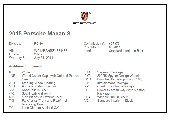 This beautiful 2015 Porsche Macan S is offered for sale by Jonathan Motorcars in Edgewater Park, NJ. This Macan S comes with a higher HP 3.0L turbo charged engine vs the base model Macan's 2.0L, and has many more options than your average Macan. Options include the 20" RS Spyder Design Wheel package, Infotainment Package including Navigation, Comfort Lighting package, Panoramic Roof System, Front and Rear ParkAssist with Reverse Camera, Lane Change Assist, Blind Spot Monitoring, Heated Leather and Alcantara Seats, Heated Steering Wheel, Black Roof Rails and Window Trim options, Exterior Color Side Blades option, Smoking Package, and 8-way power seats with Memory Package.