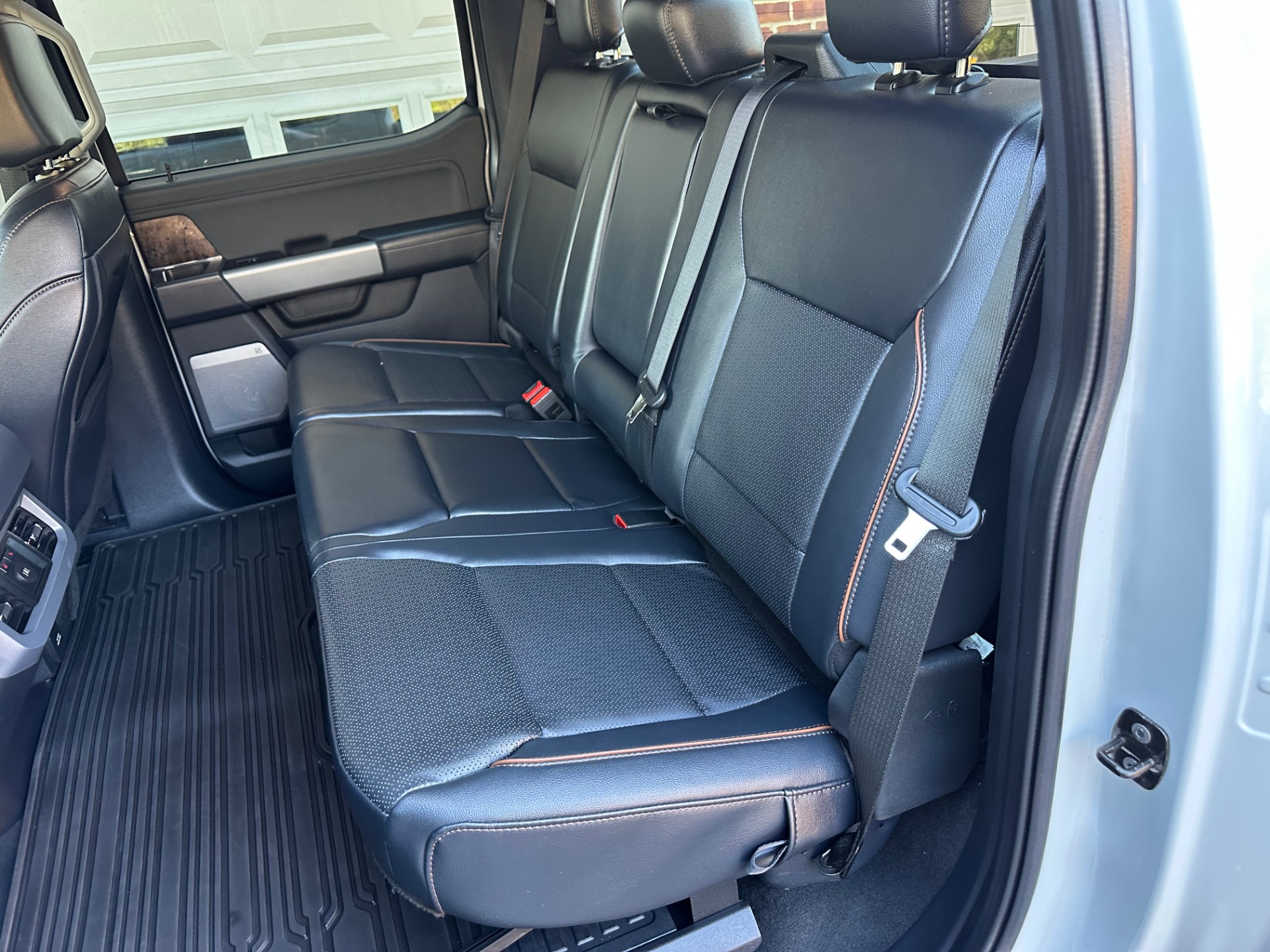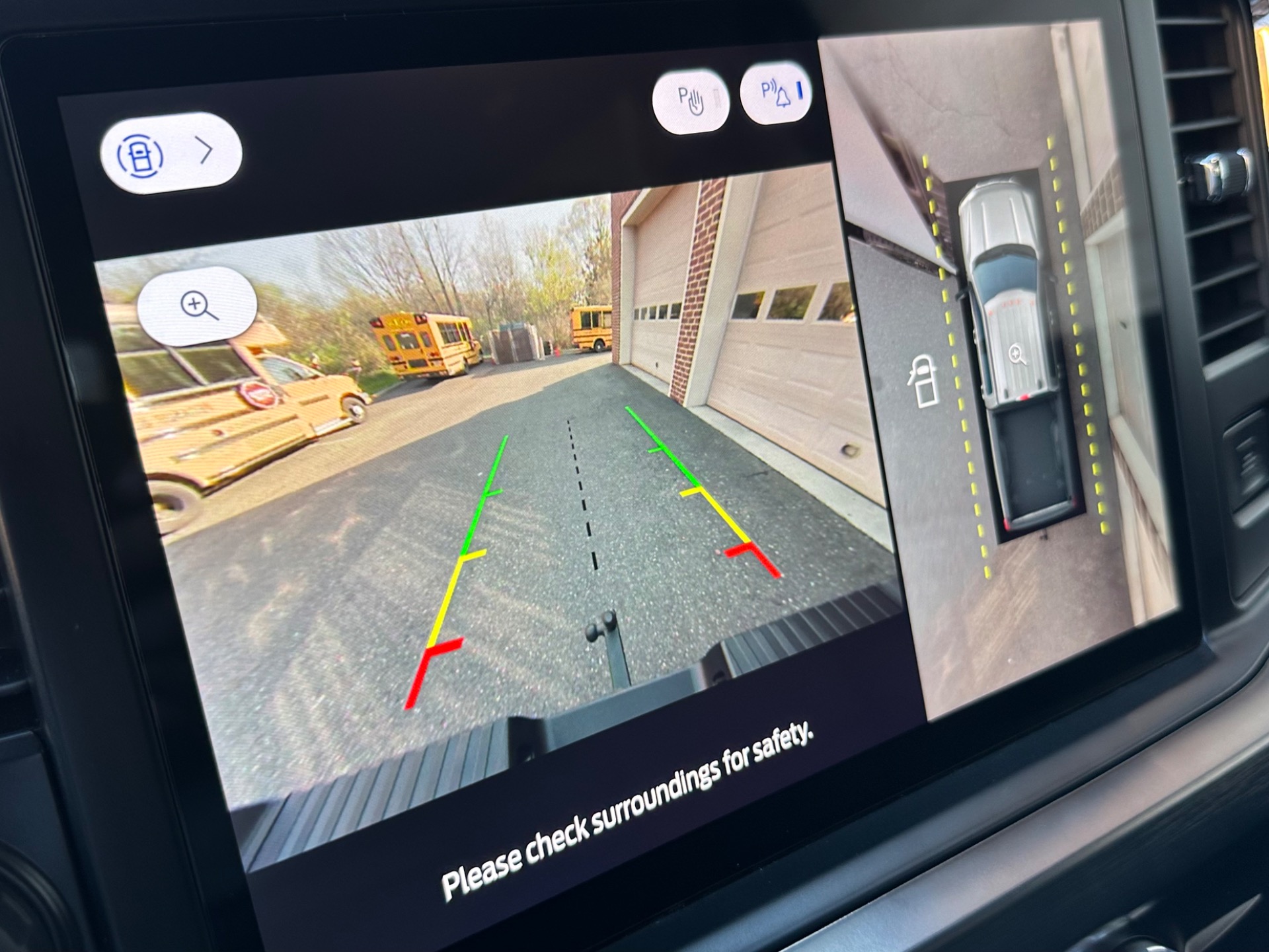 - Marketing Package : Lariat Ultimate Package (Includes Ford Co-Pilot360 Assist 2.0, 360 degree camera, adaptive cruise control with stop-and-go and predictive speed assist, lane centering, automatic high beam, blind spot information system (BLIS) with cross-traffic alert and trailer coverage, front and rear parking sensors, lane-keeping alert, lane-keeping aid, driver alert, intersection assist, pre-collision assist with automatic emergency braking, forward collision warning with pedestrian detection, post-collision braking, reverse brake assist, head-up display, 4-way adjustable headrests, B&O 1080-watt sound system with 13 speakers and subwoofer, HD radio, power running boards, tailgate step, Pro Trailer Backup Assist, Pro Trailer Hitch Assist, trailer reverse guidance, and power-sliding glass with defrost and privacy glass.)