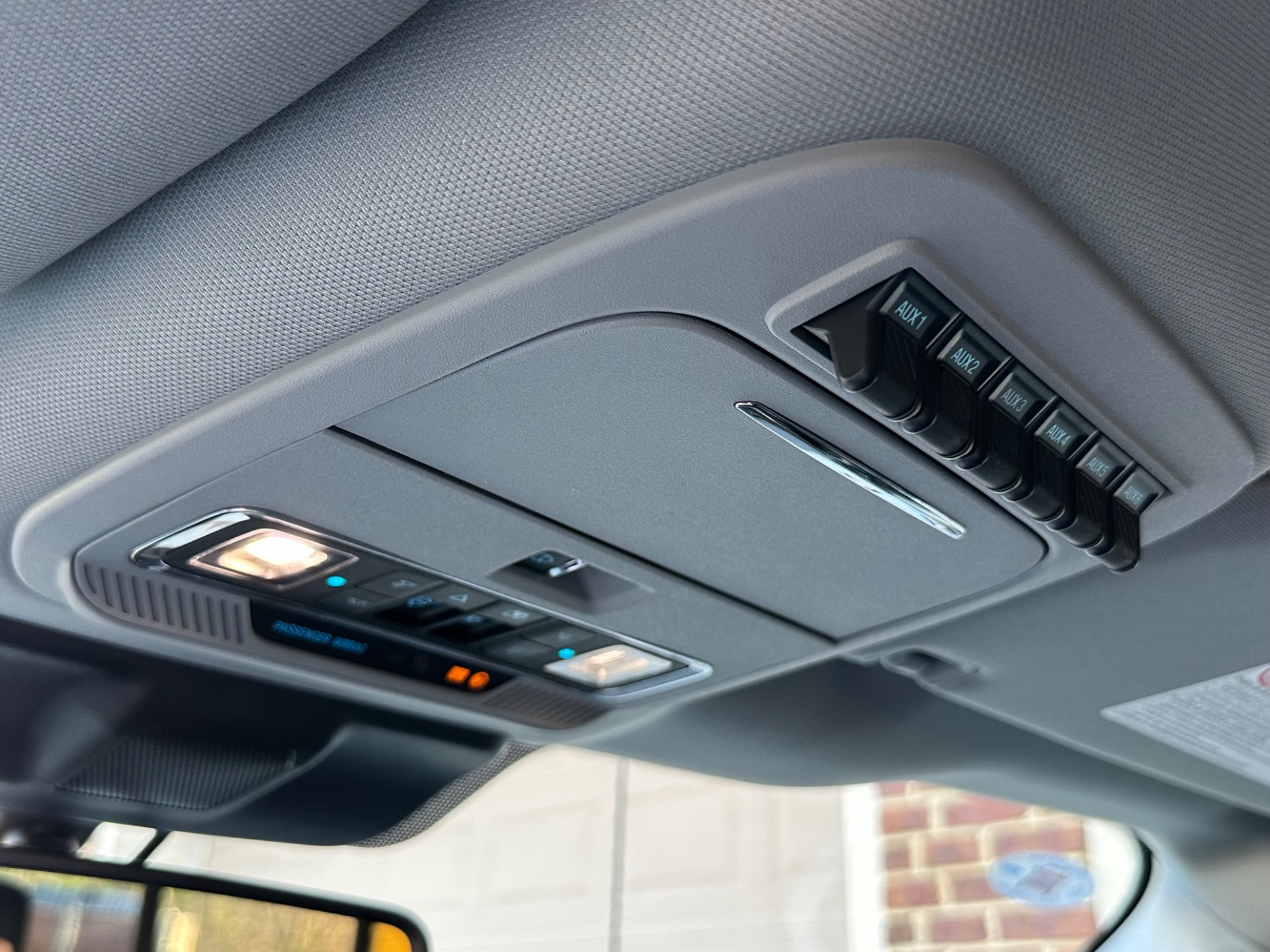 - Seats : Leather Luxury Captains Chairs w/Console (Includes 40/Console/40 split bench seat with premium leather seating surfaces, 10-way power driver and passenger seats, four-way adjustable driver and passenger headrests, matching 60/40 rear bench with partitioned locking under-seat storage, 12V powerpoint, and flow-through console with 110V/150W inverter outlet in rear.)